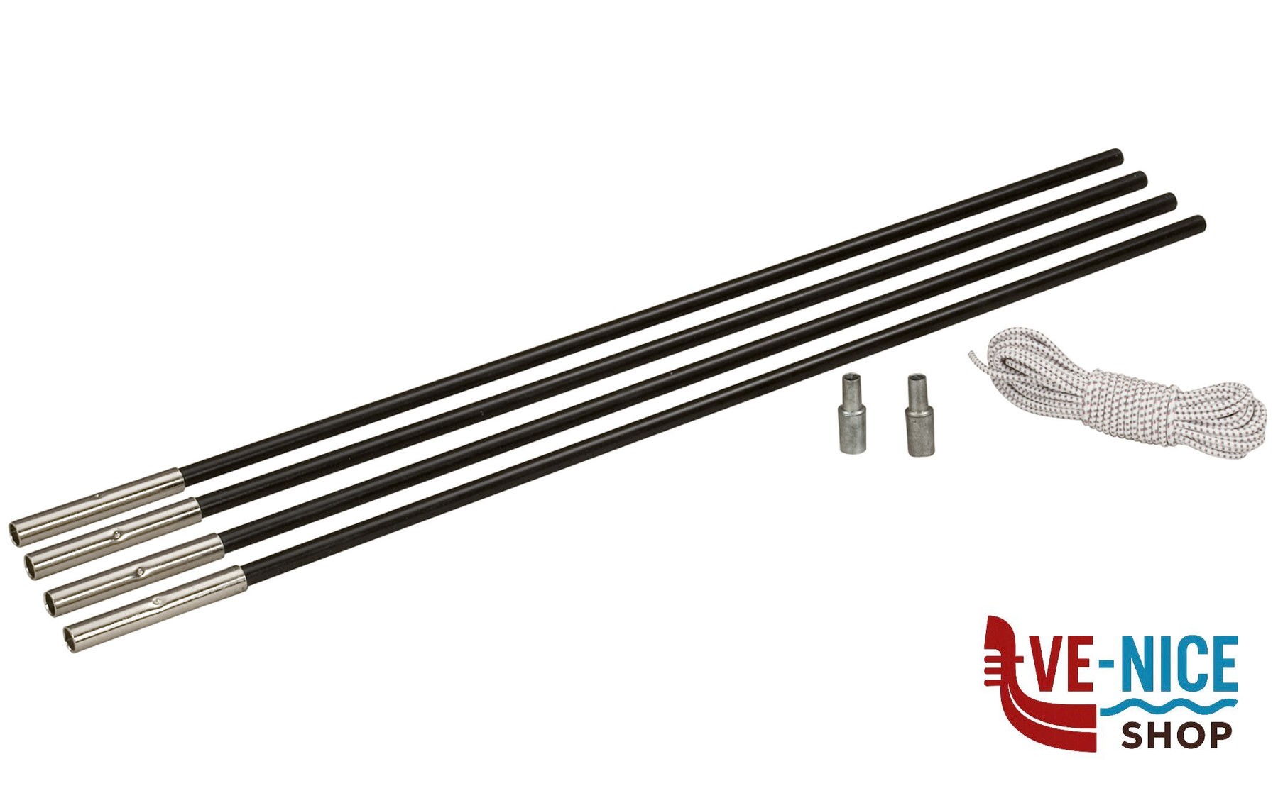 Reparation set for tent poles made from fiberglass. The set includes: 4 poles, one elastic braid and 2 pointed pole ends. The set is available in five different versions.