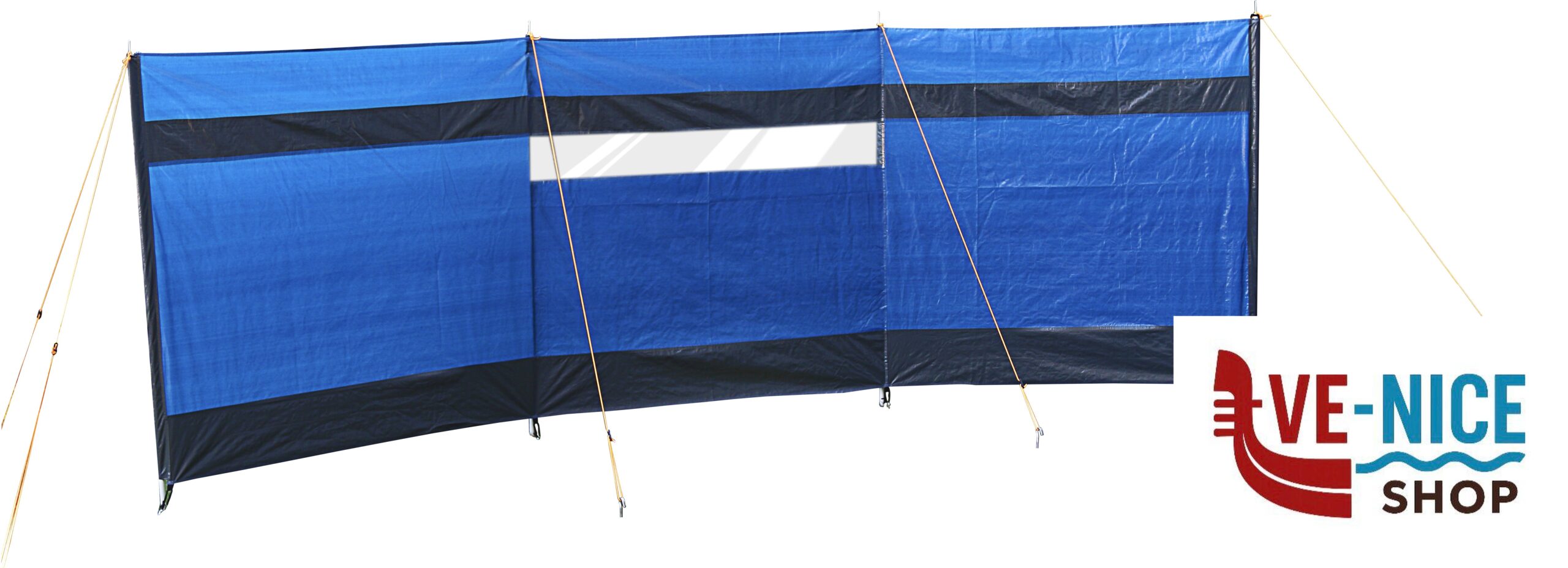 Teli paravento con finestrella panoramica in plastica trasparente. Completi di paleria divisibile in acciaio ed accessori di montaggio. Altezza: 140 cm.