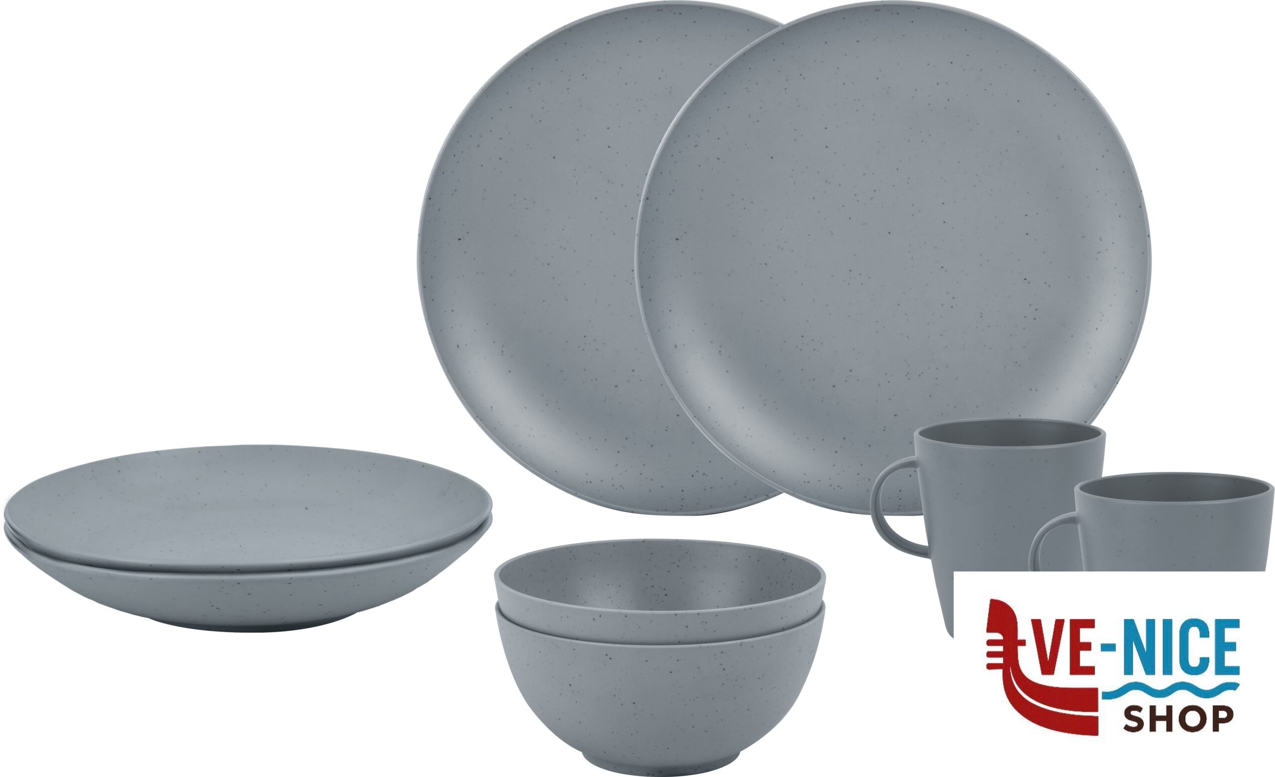 Pezzi~8!!!Piatto fondo~2 x Ø 21 cm!!!Piatto piano~2 x Ø 25 cm!!!Scodella~2 x Ø 15 cm!!!Tazza~2 x 30 cl – Ø 9 x H10 cm