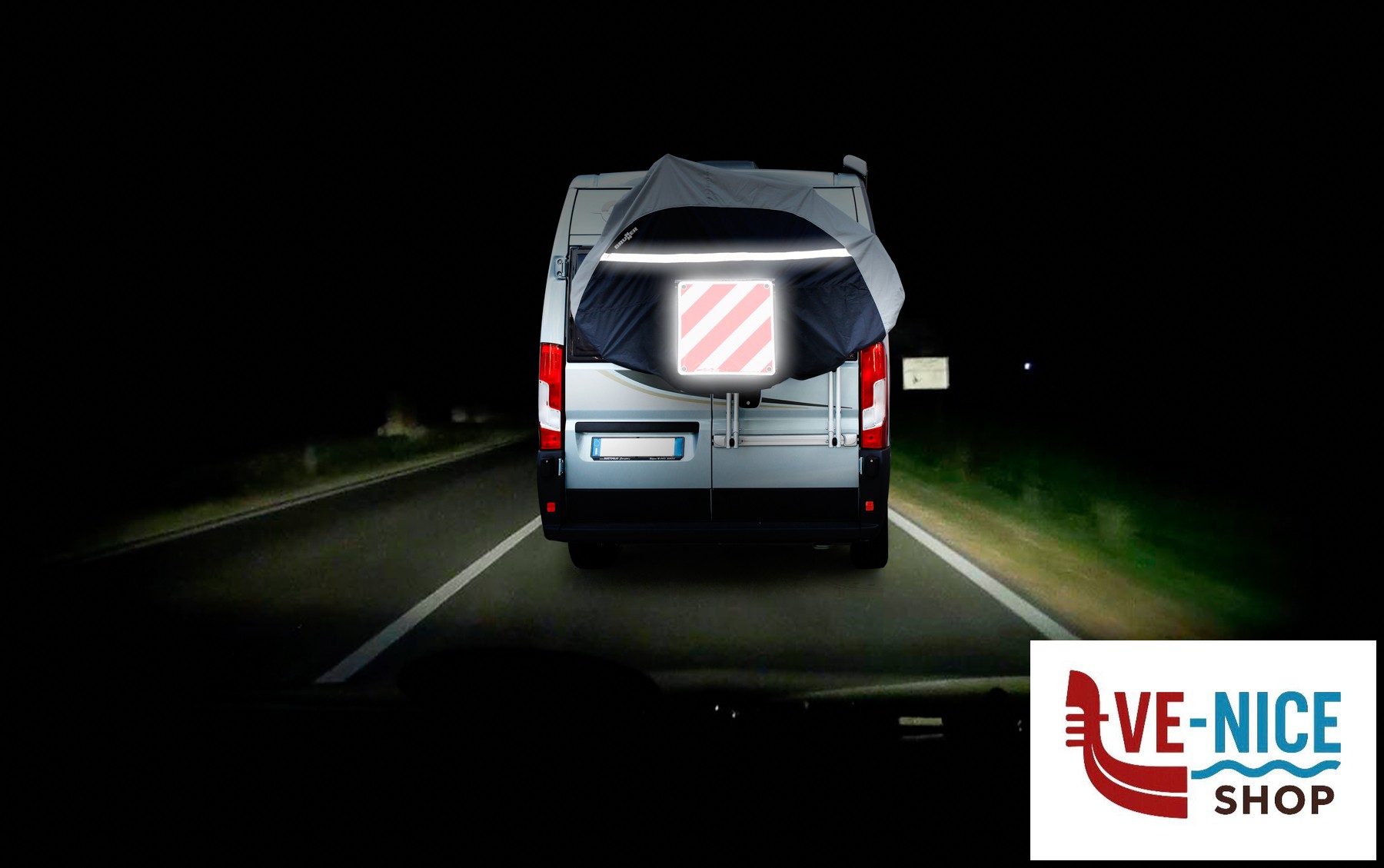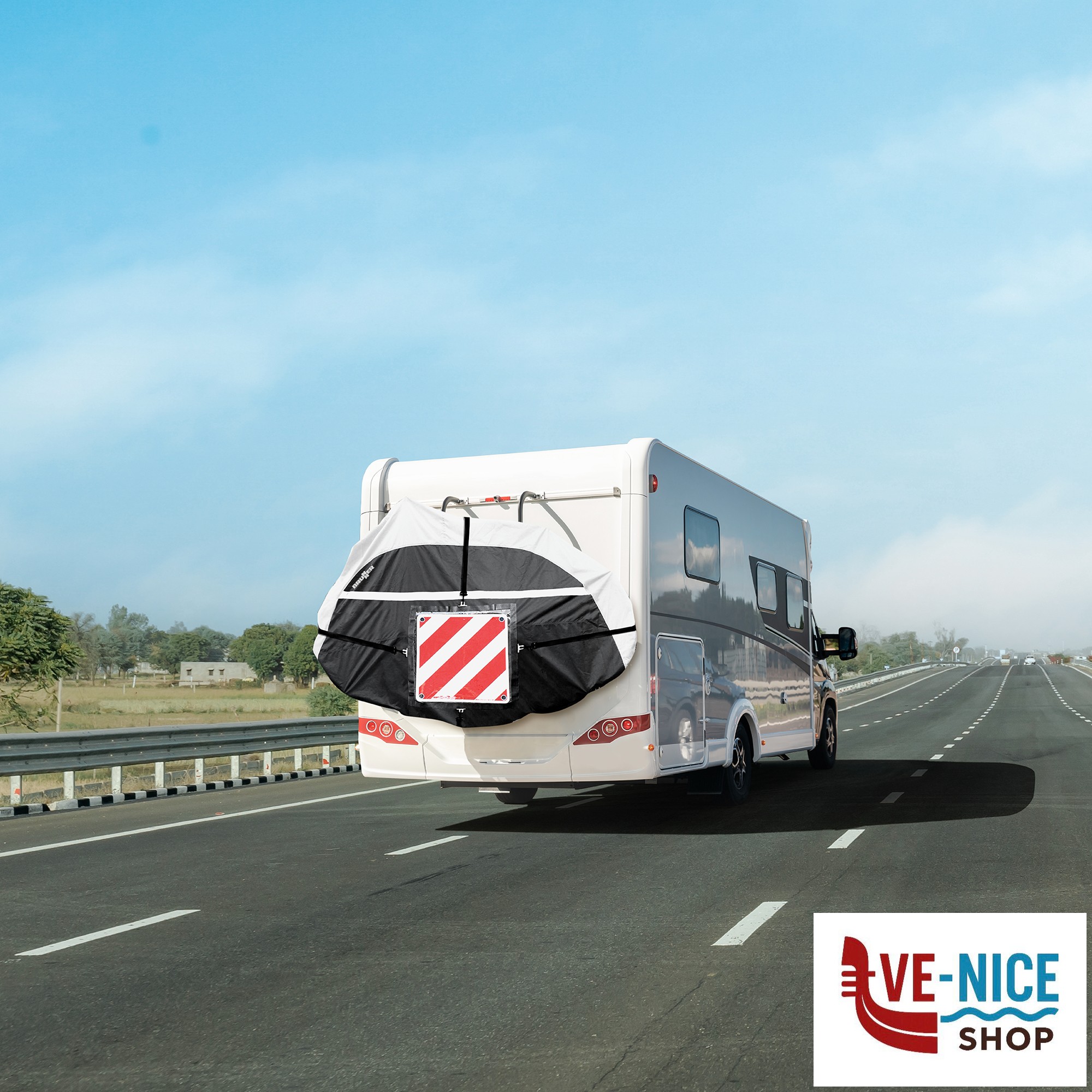 Copribicicletta in resistente tessuto di poliestere con spalmatura idrorepellente. Dotato di speciale tasca per la sistemazione del cartello carichi sporgenti.