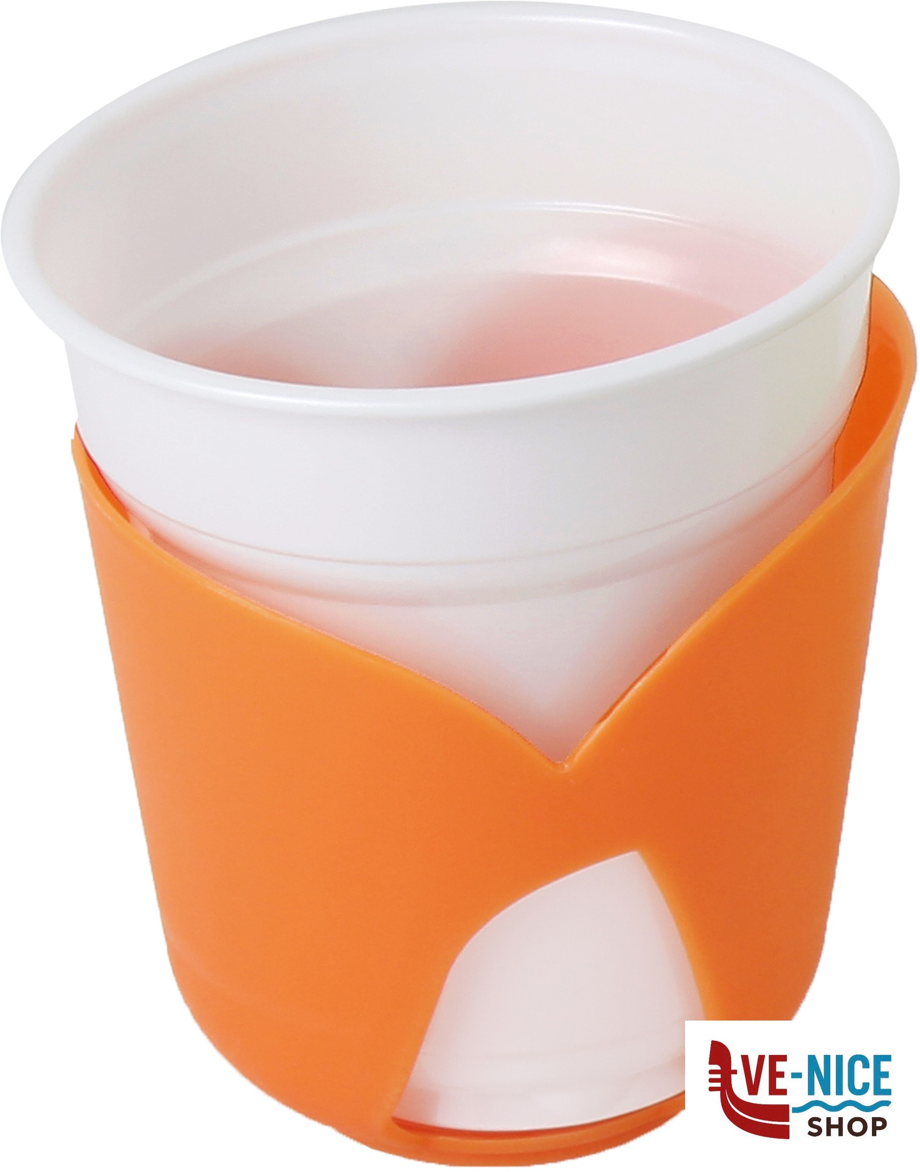 Portabicchieri in plastica. Colori assortiti. Set di sei pezzi. Adatto per bicchieri in plastica da 200 ml.