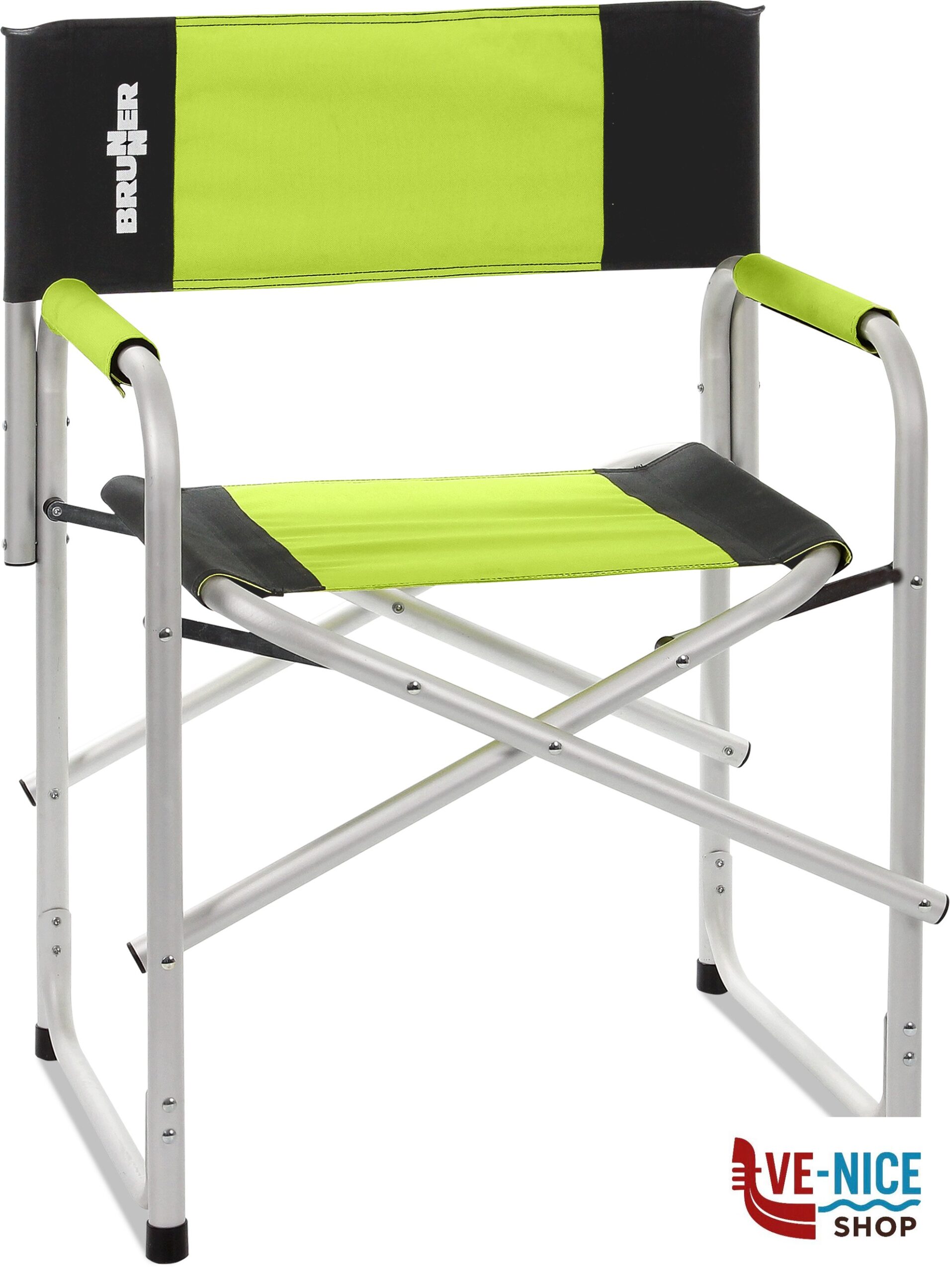 Sedia regista con struttura pieghevole in alluminio. Schienale e seduta sono in poliestere antiscivolo. Seduta, schienale e braccioli sono imbottiti. Con meccanismo di chiusura di sicurezza.