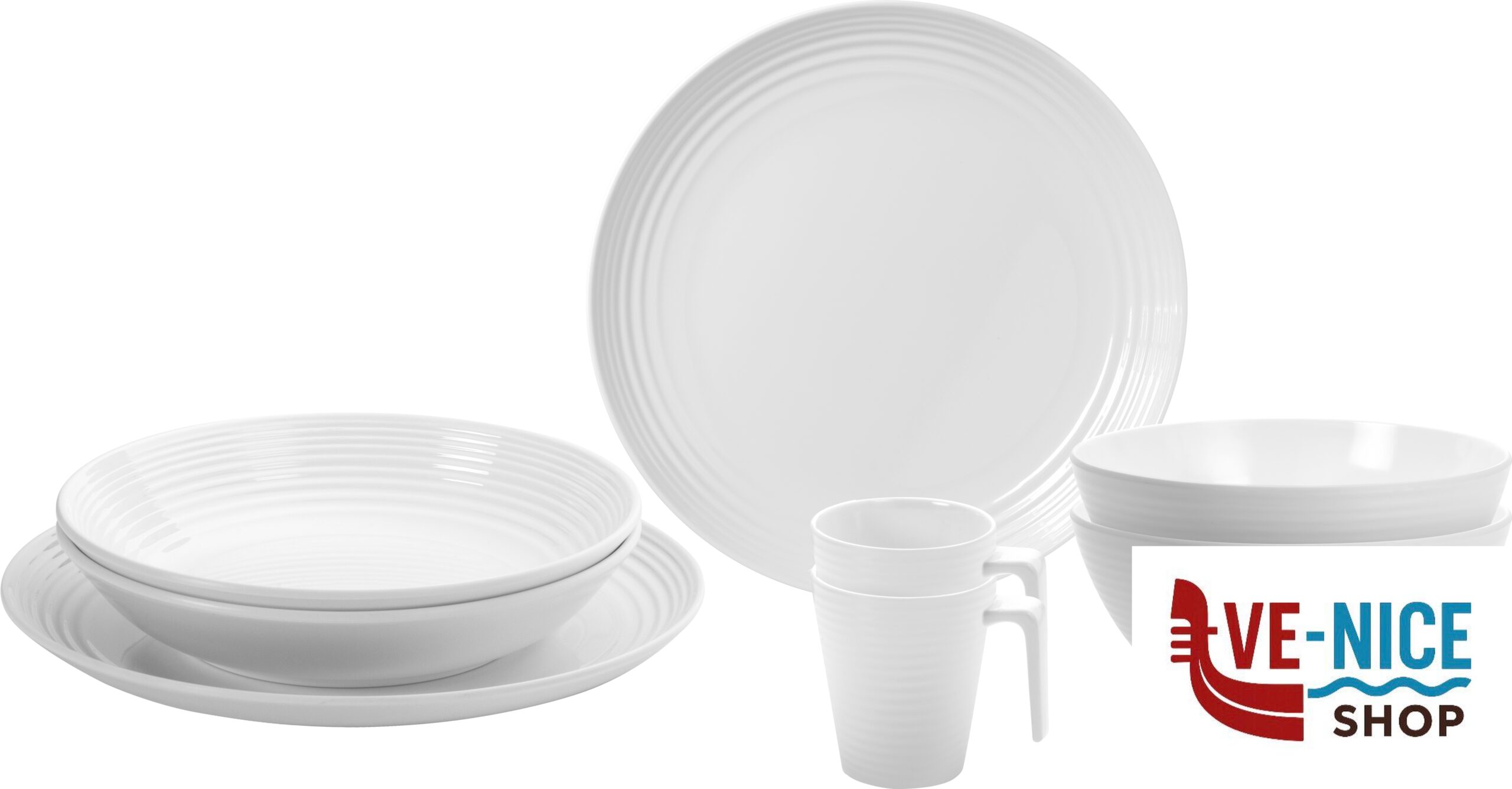 Pezzi~8!!!Piatto fondo~2 x Ø 20 cm!!!Piatto piano~2 x Ø 24,5 cm!!!Scodella~2 x Ø 16 cm!!!Tazza~2 x 30 cl – Ø 8,5 x H10 cm