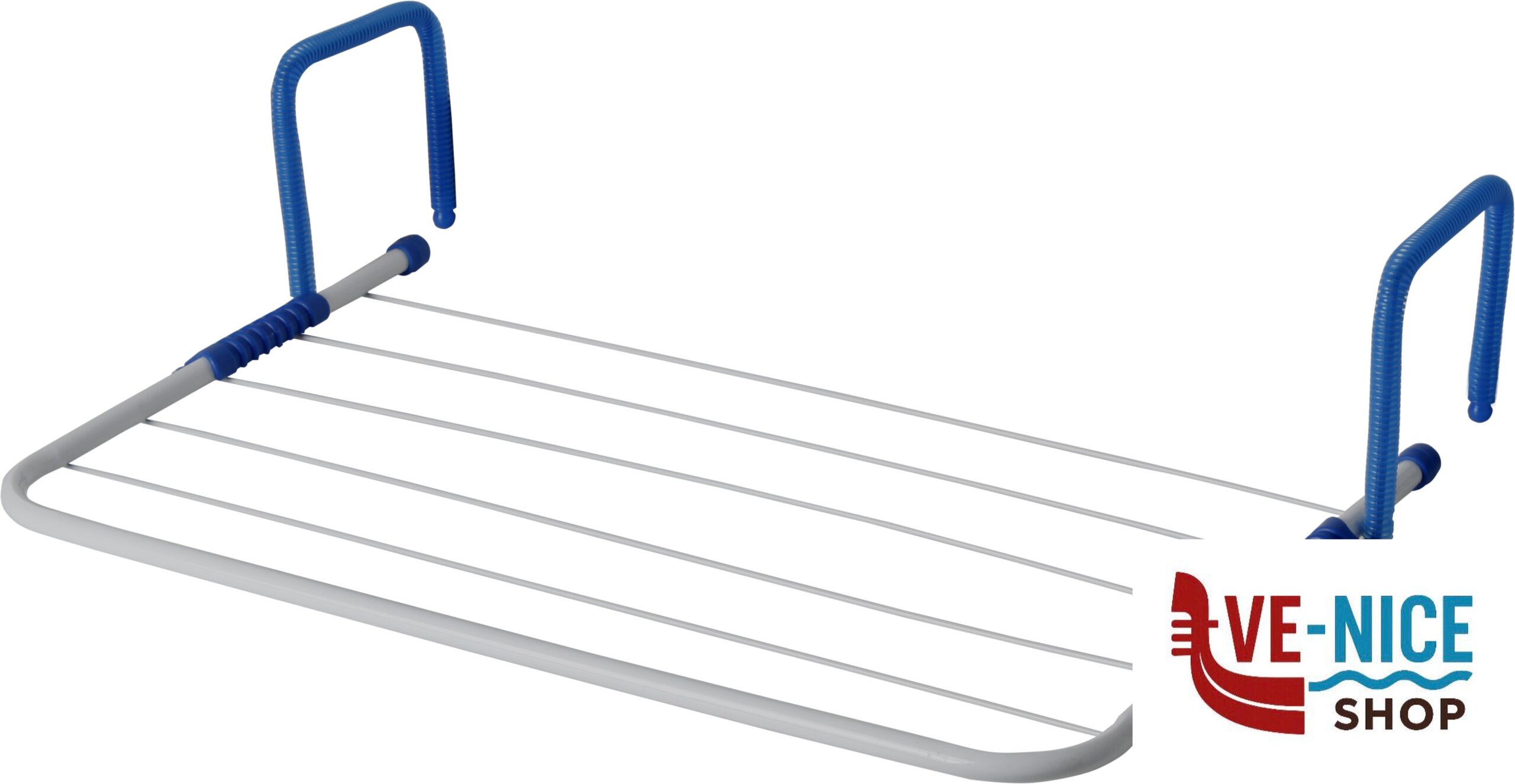 Practical, space saving clothes airer for caravan and motorhome windows. Due to its adjustable brackets also suitable for household. Frame made of powder-painted metal. Replaces about 3 meters of washing line.
