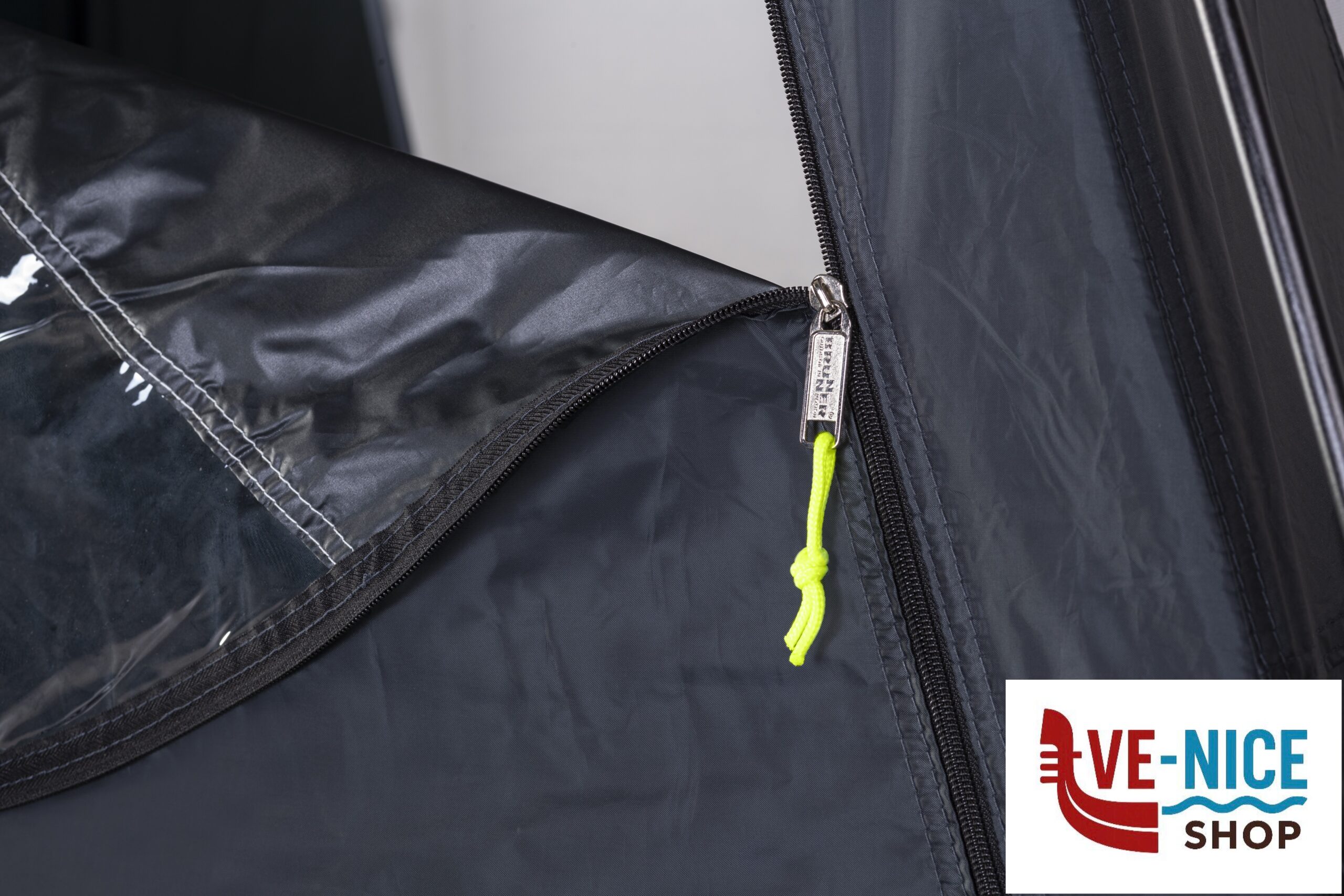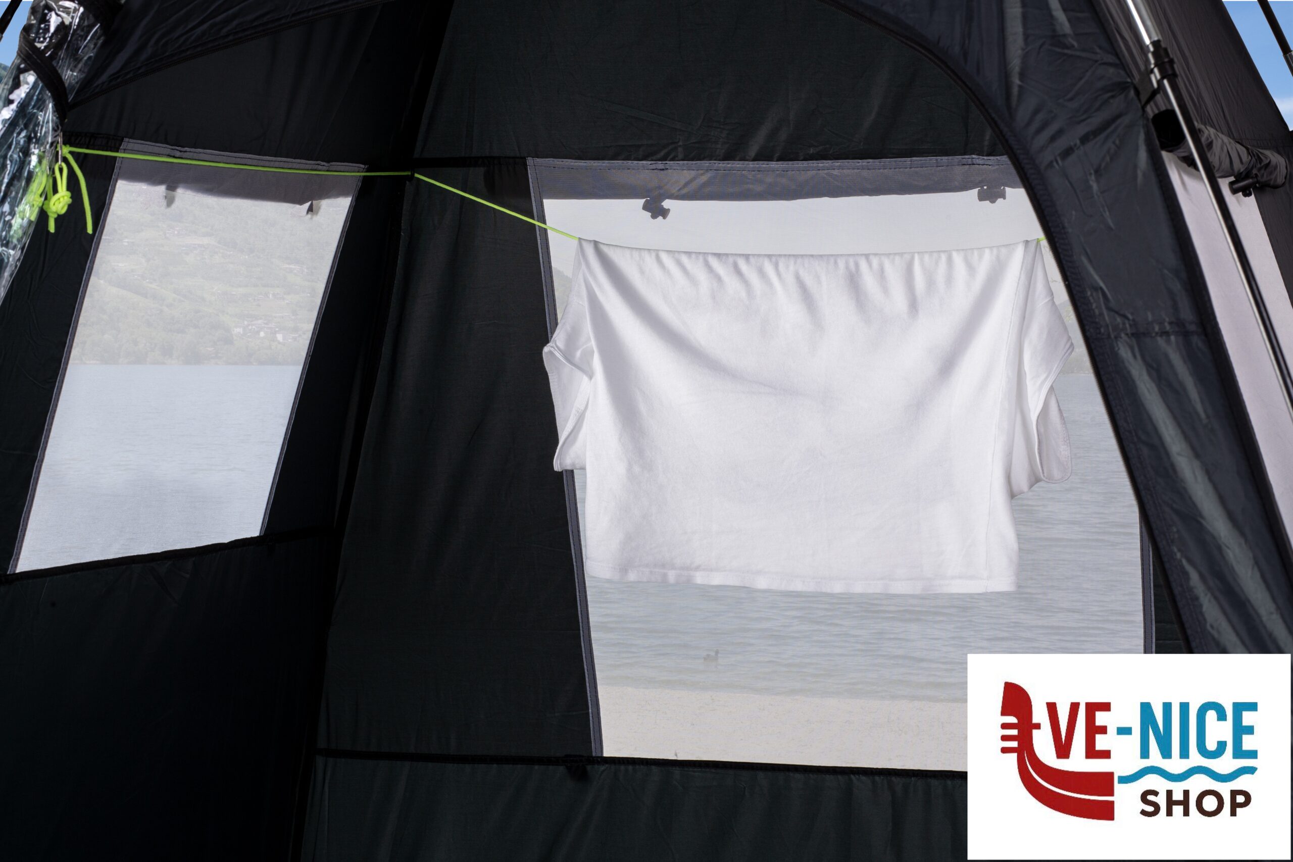 Practical cabin tent for camping and beach. Perfectly suited to shower and get changed, however, thanks to its built in ventilation also ideal as a cooking tent. Simple construction, easily erectable by everybody. With zippered door and a circulating protective strip. The steep walls provide for a spacious interior. Compact pack size. Fittings and a pratical carry bag are included.
