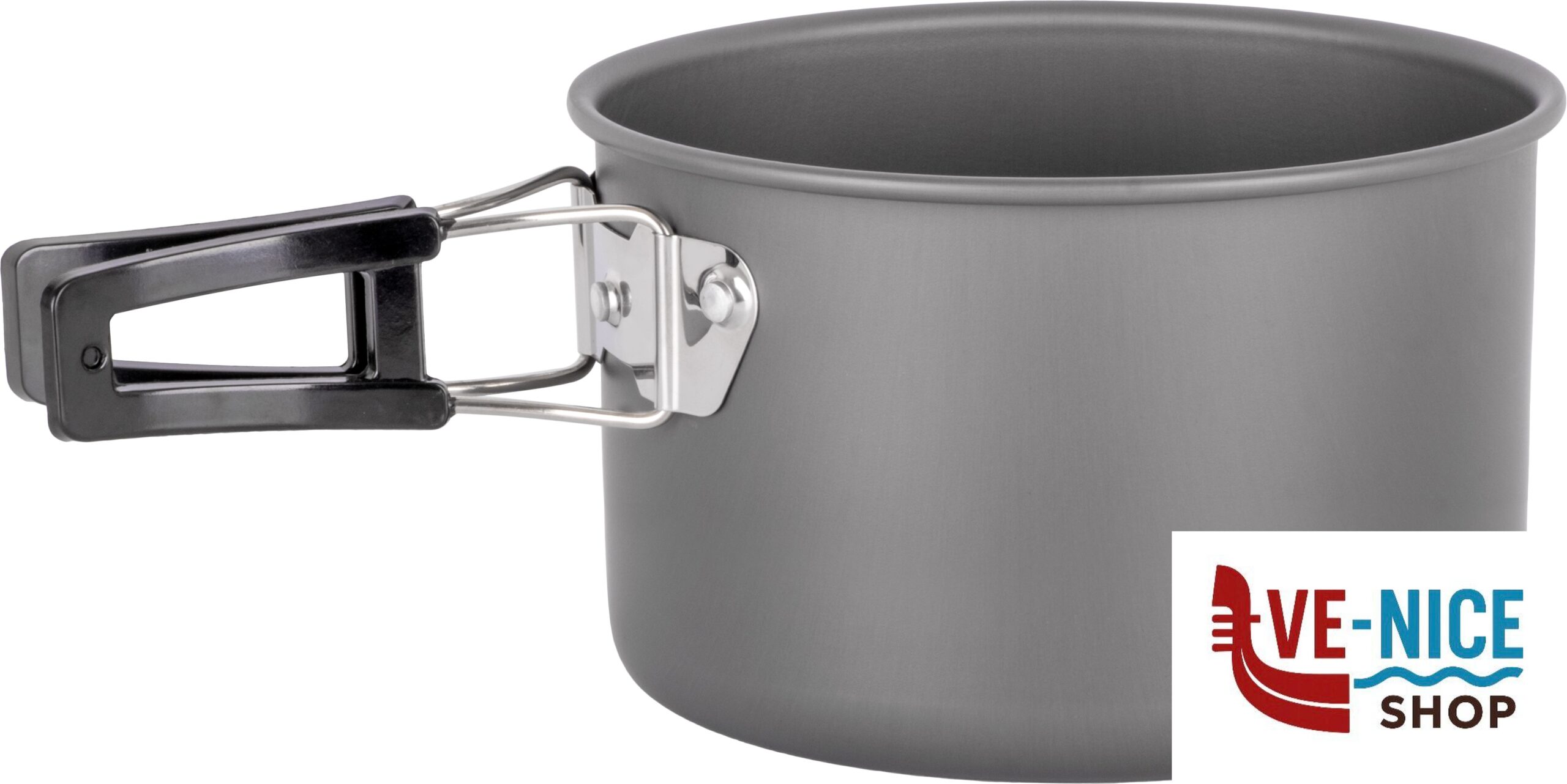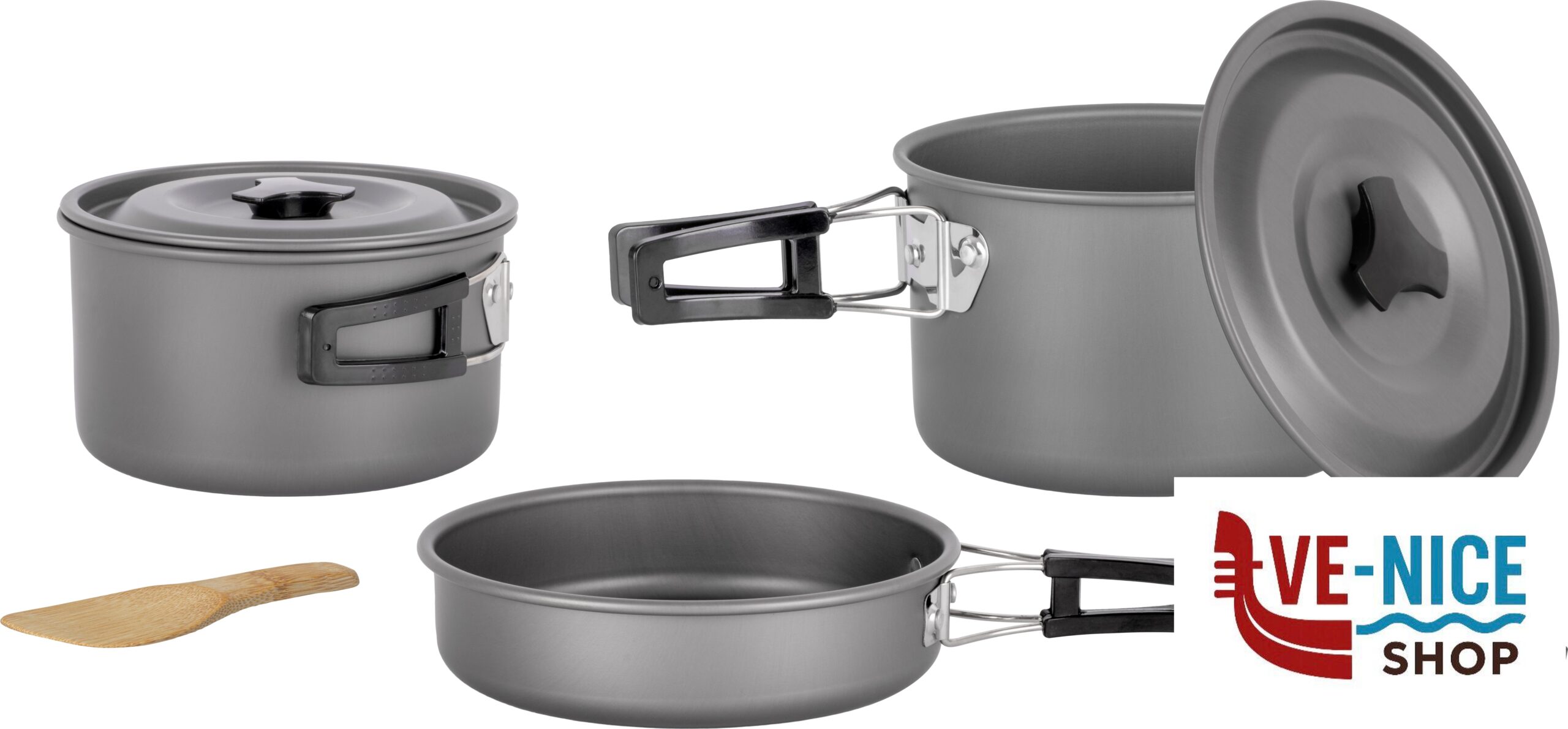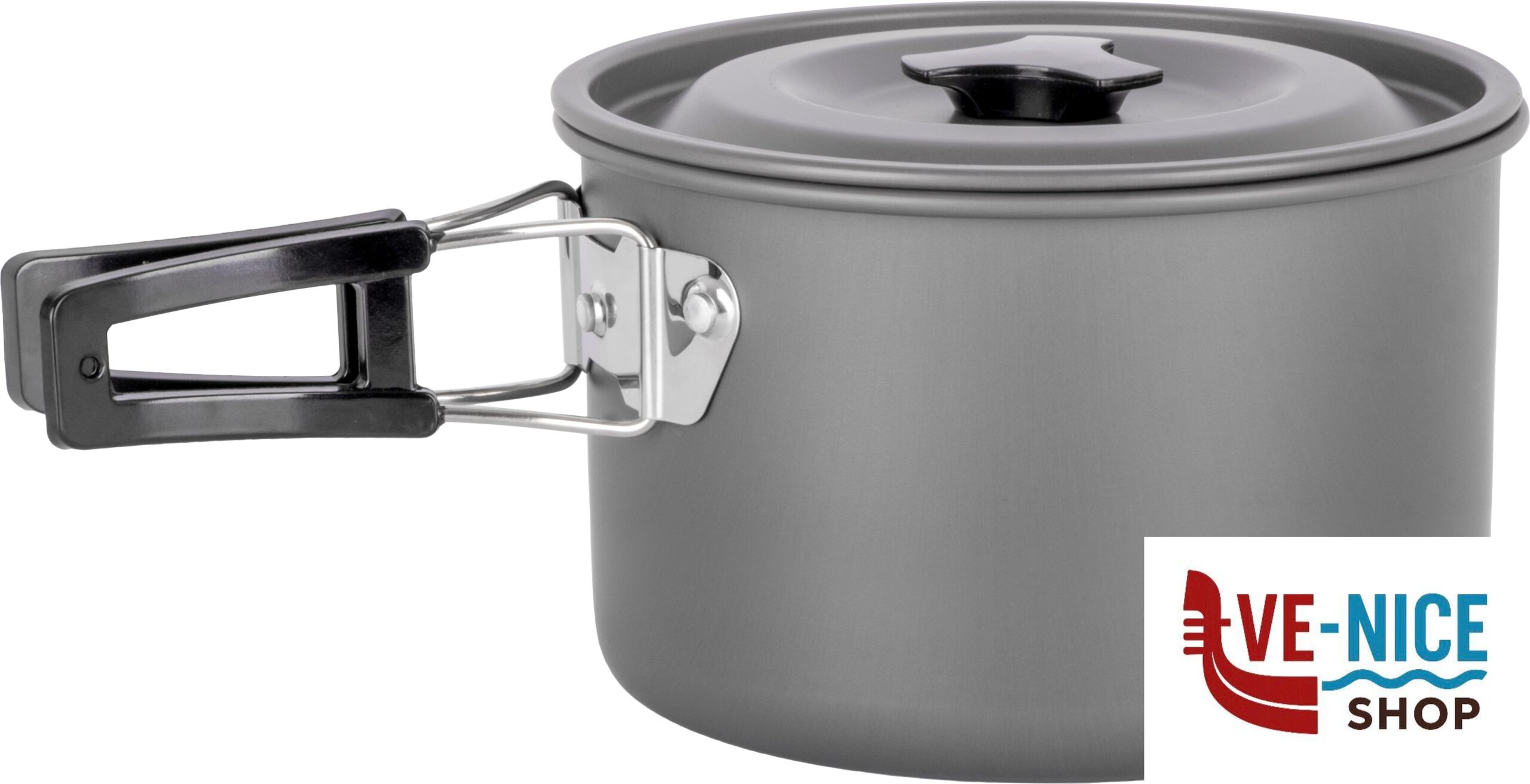 Outdoor cooking set in anodised aluminium for 4/5 persons. Foldable handles coated with heat-insulating silicone. The set comes with: