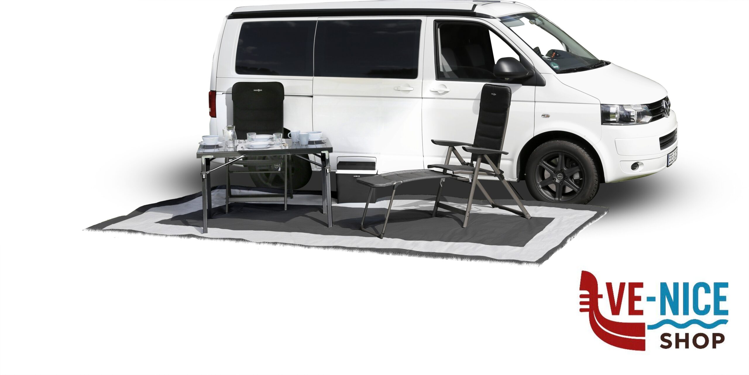 Lightweight awning carpet. Usable on both sides. Particularly convenient for smaller sized caravans and motorhomes.
