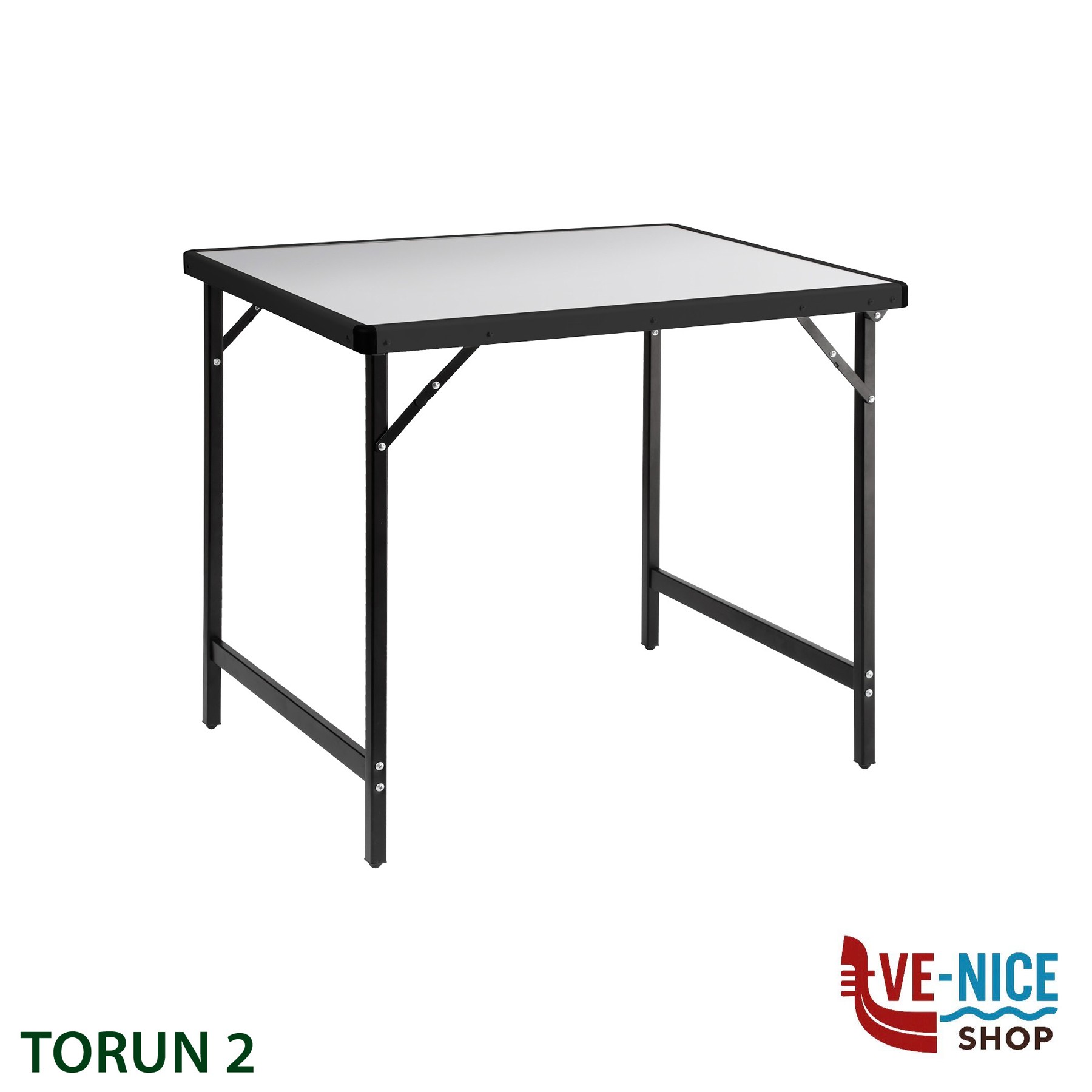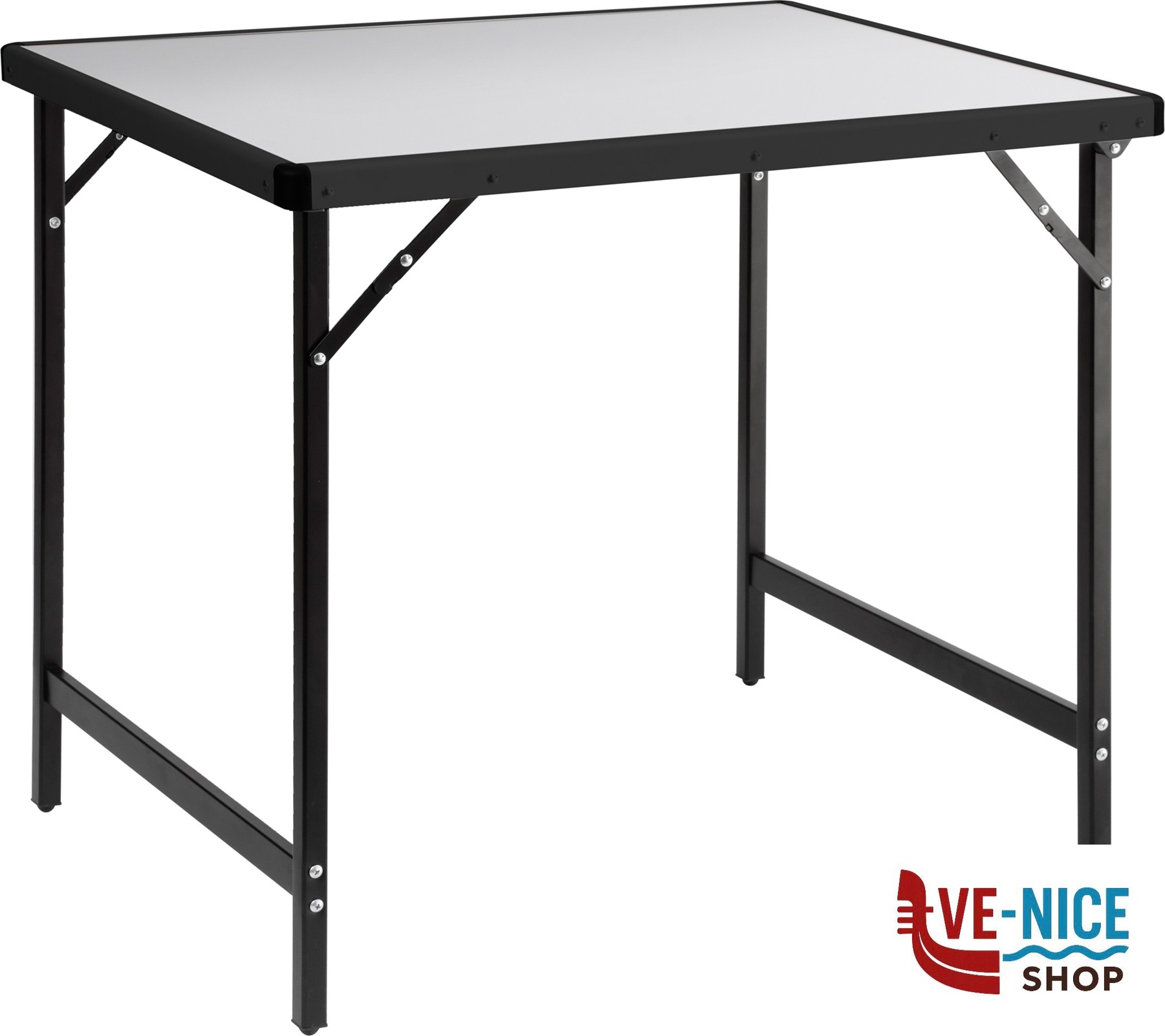 Table series with aluminium top and painted steel folding legs. Compact and easy to transport. The use of high-quality, hard-wearing materials guarantees a long lifetime.