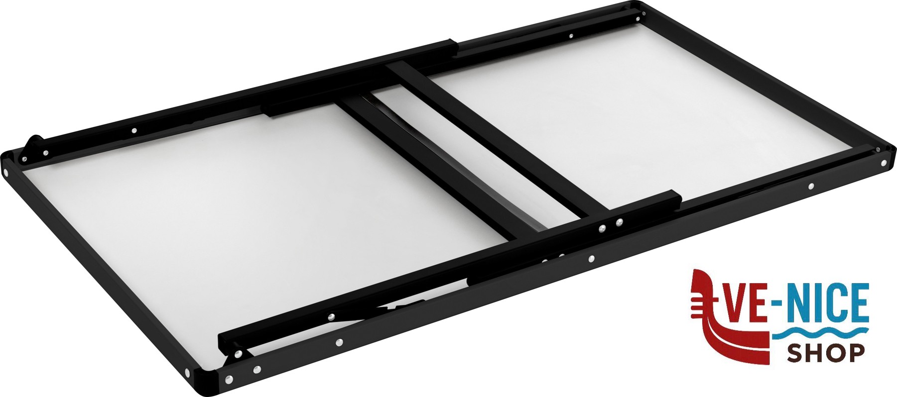 Serie di tavoli con ripiano in alluminio e gambe pieghevoli in acciaio verniciato. Compatti e facili da trasportare. L’impiego di materiali di alta qualità garantisce un utilizzo duraturo nel tempo.