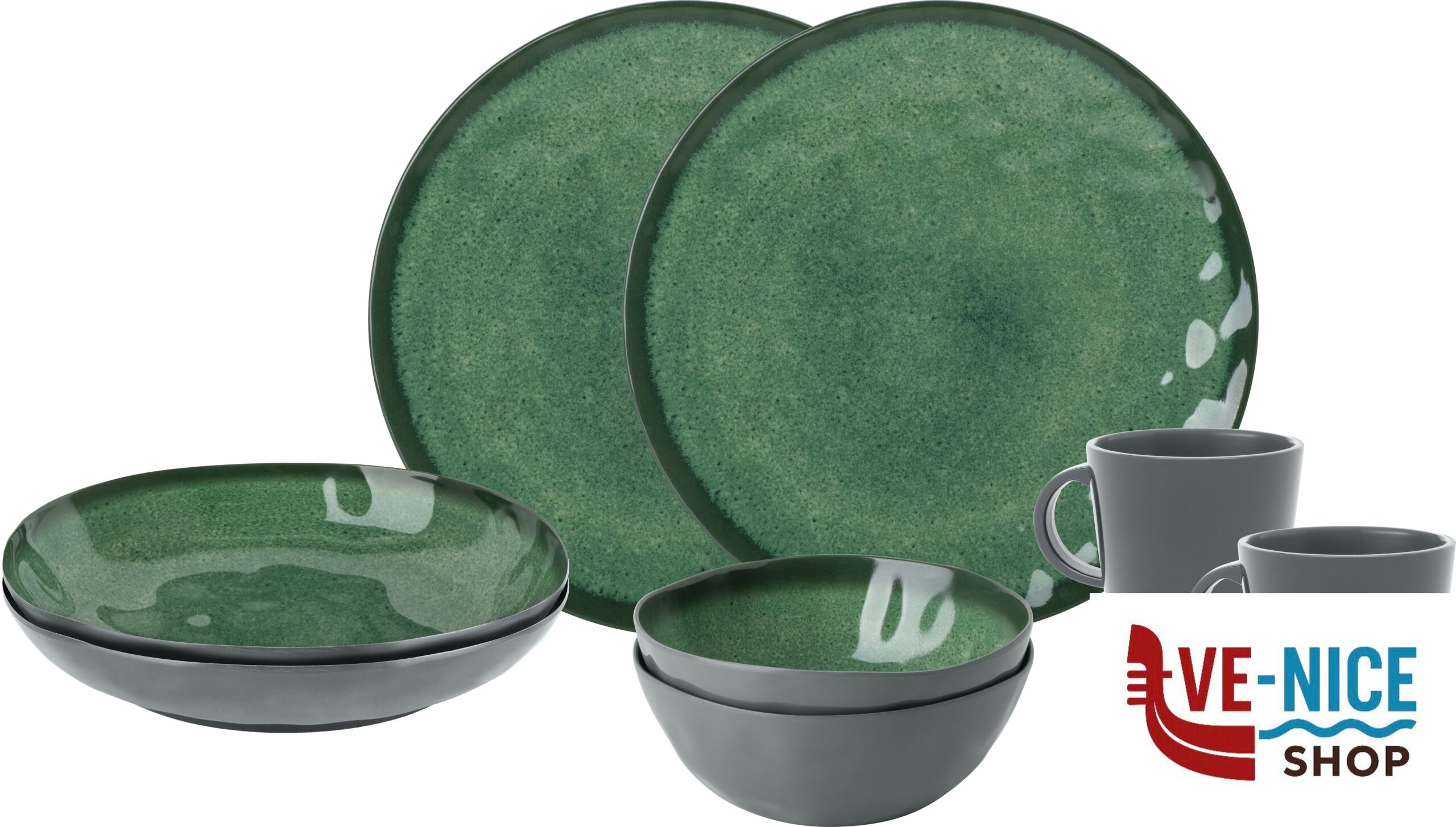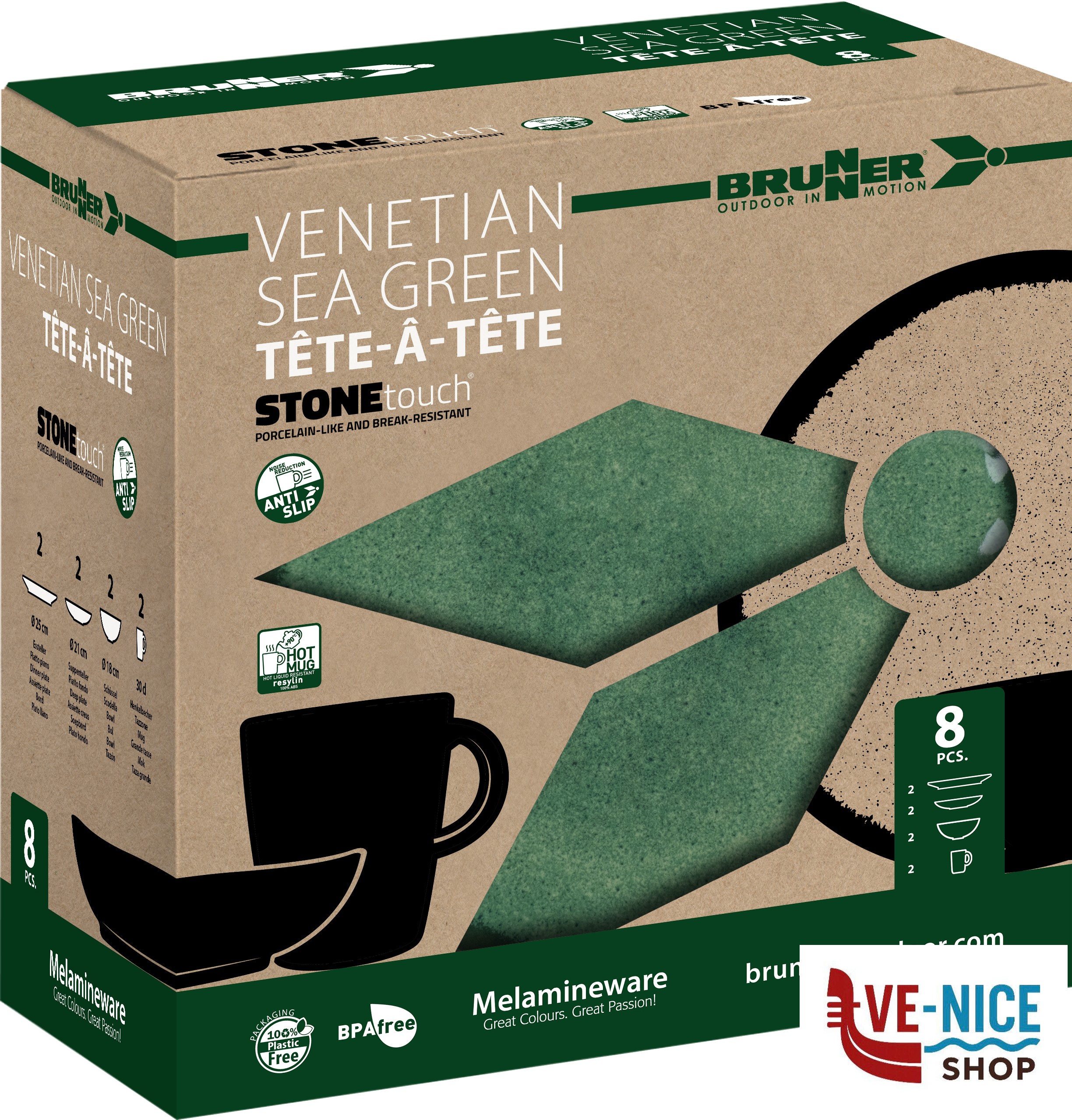 Pezzi~8!!!Piatto fondo~2 x Ø 21 cm!!!Piatto piano~2 x Ø 25 cm!!!Scodella~2 x Ø 16 cm!!!Tazza~2 x 30 cl – Ø 9 x H10 cm