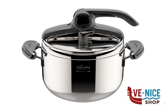 PENTOLA A PRESSIONE AMICA DA 5 LITRI IN ACCAIO INOX 18.10 DOTATA DI FONDO IRRADIAL PLUS. VALVOLA A RILASCIO GRADUATO DI VAPORE, FACILE DA PULIRE.