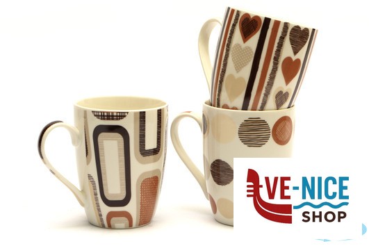 ConfrontaCOLORATA LINEA DI TAZZE IN PORCELLANA CON SIMPATICI DECORI ASSORTITI CHE RICHIAMANO IL COLORE E LA DOLCEZZA DEL CIOCCOLATO E DELLA PRIMA COLAZIONE