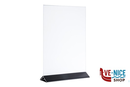 PORTAMENU VERTICALE A5 CM 15X7 H.23 ACRYLICO CON BASE NERA IN ACCIAIO INOX