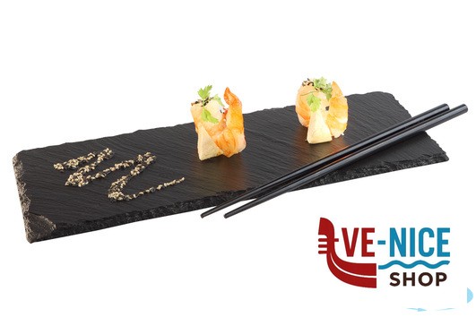 VASSOIO IN ARDESIA NATURALE 30 X 12 CM SPESSORE 6-9 MM CON PIEDINI ANTISCIVOLO 00988