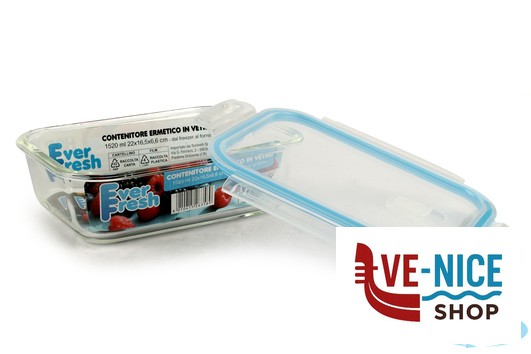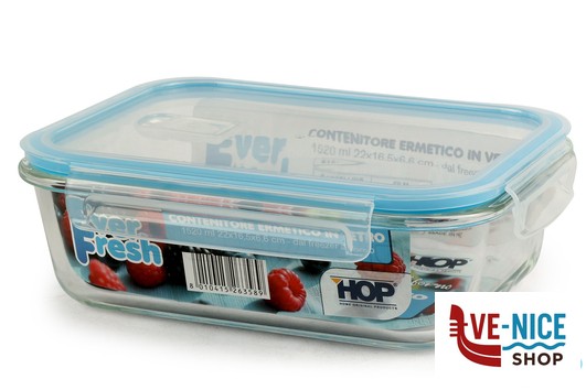 CONTENITORE ERMETICO PER ALIMENTI IN VETRO BOROSILICATO, CON COPERCHIO IN PLASTICA E VALVOLA SOTTOVUOTO. UTILIZZABILE IN FRIGORIFERO, FREEZER, FORNO MICROONDE E TRADIZIONALE. IL VETRO PUO RESISTERE A TEMPERATURE MOLTO ELEVATE, FINO A 400ᄚ