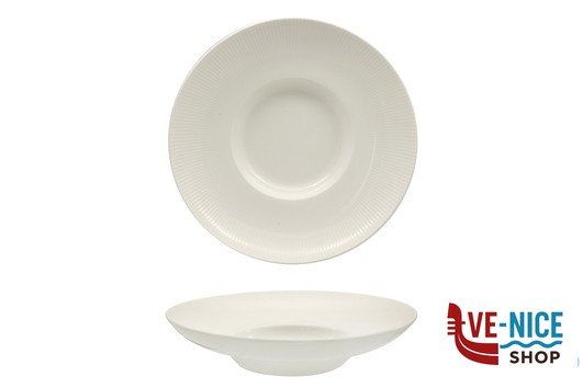 ELEGANTE LINEA DI PIATTI IN PORCELLANA ALLUMINICA BIANCA CON FINITURA LUCIDA. IL DECORO A RILIEVO DELLA FALDA CONFERISCE A QUESTA LINEA UN TOCCO DI MODERNITA’ CHE SI ADATTA A QUALSIASI STILE, IL MATERIALE, ARRICCHITO DI OSSIDO DI ALLUMINIO RISULTA ESSERE PIU’ RESISTENTE DELLA NORMALE PORCELLANA E LA SUPERFICIE E’ PIU’ LISCIA E COMPATTA.