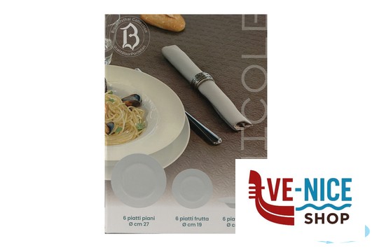 SERVIZIO TAVOLA IN PORCELLANA BIANCA COMPOSTO DA 6 PIATTI PIANI, 6 PIATTI FONDI E 6 PIATTI FRUTTA, CON SCATOLA RINFORZATA A 5 STRATI