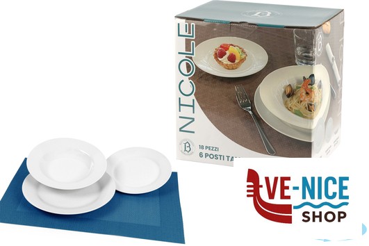 NICOLE ROUND-SERVIZIO TAVOLA 18 PEZZI PORCELLANA BIANCO