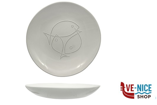 COLLEZIONE DI PIATTI CON DECORO MARINO IN GRES PORCELLANATO, PARTICOLARMENTE ADATTA AL SERVIZIO DI PIATTI A BASE DI PESCE. LAVORATO A MANO A COLATURA