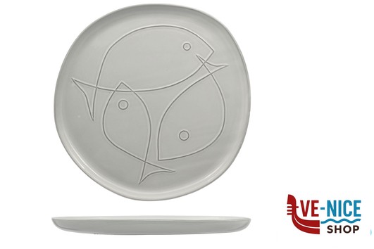 COLLEZIONE DI PIATTI CON DECORO MARINO IN GRES PORCELLANATO, PARTICOLARMENTE ADATTA AL SERVIZIO DI PIATTI A BASE DI PESCE. LAVORATO A MANO A COLATURA
