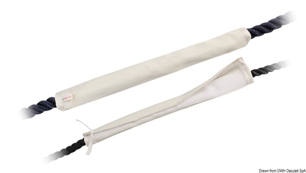Cime Proteggi cime, accessori per cime, rete battagliola Proteggi cima Fabbricato in poliestere resistente UV . Fissaggio con chiusura a strappo e nastri agli estremi. Proteggono le cime dalla spigolosità dei passacavi o delle falchette nelle barche a vela.