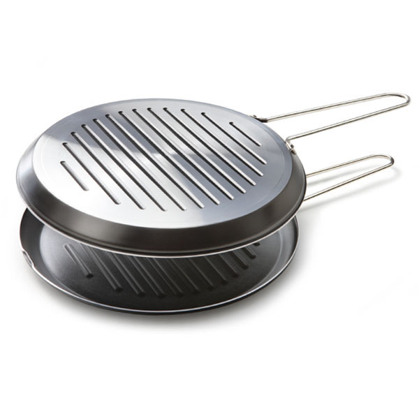 Alluminio – Spessore mm 2 Esterno lacca siliconica colore nero satinato Interno antiaderente 5 strati grigliato Manici metallo rivettati Bordo antigoccia Sistema chiusura ad incastro Garanzia 2 anni