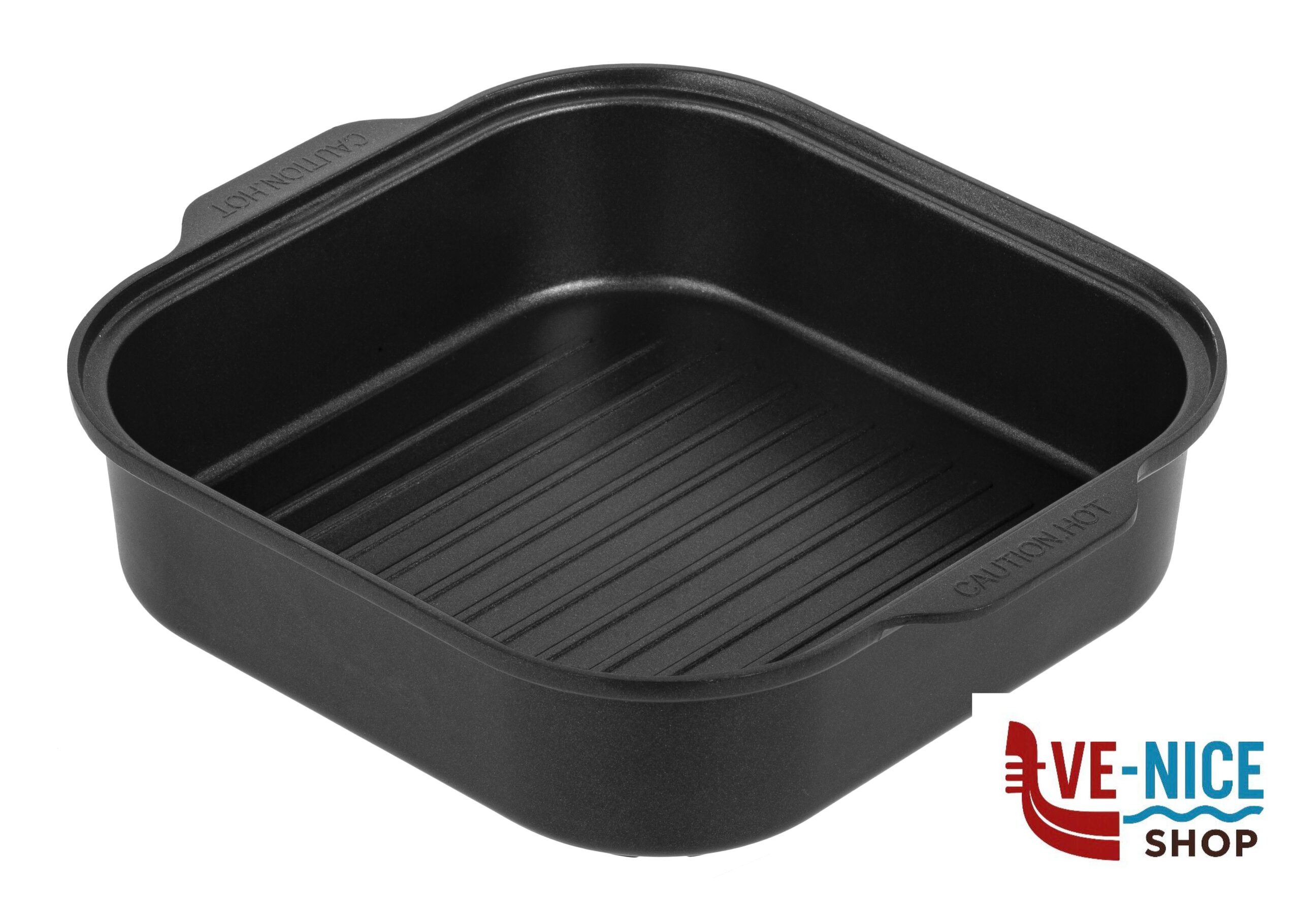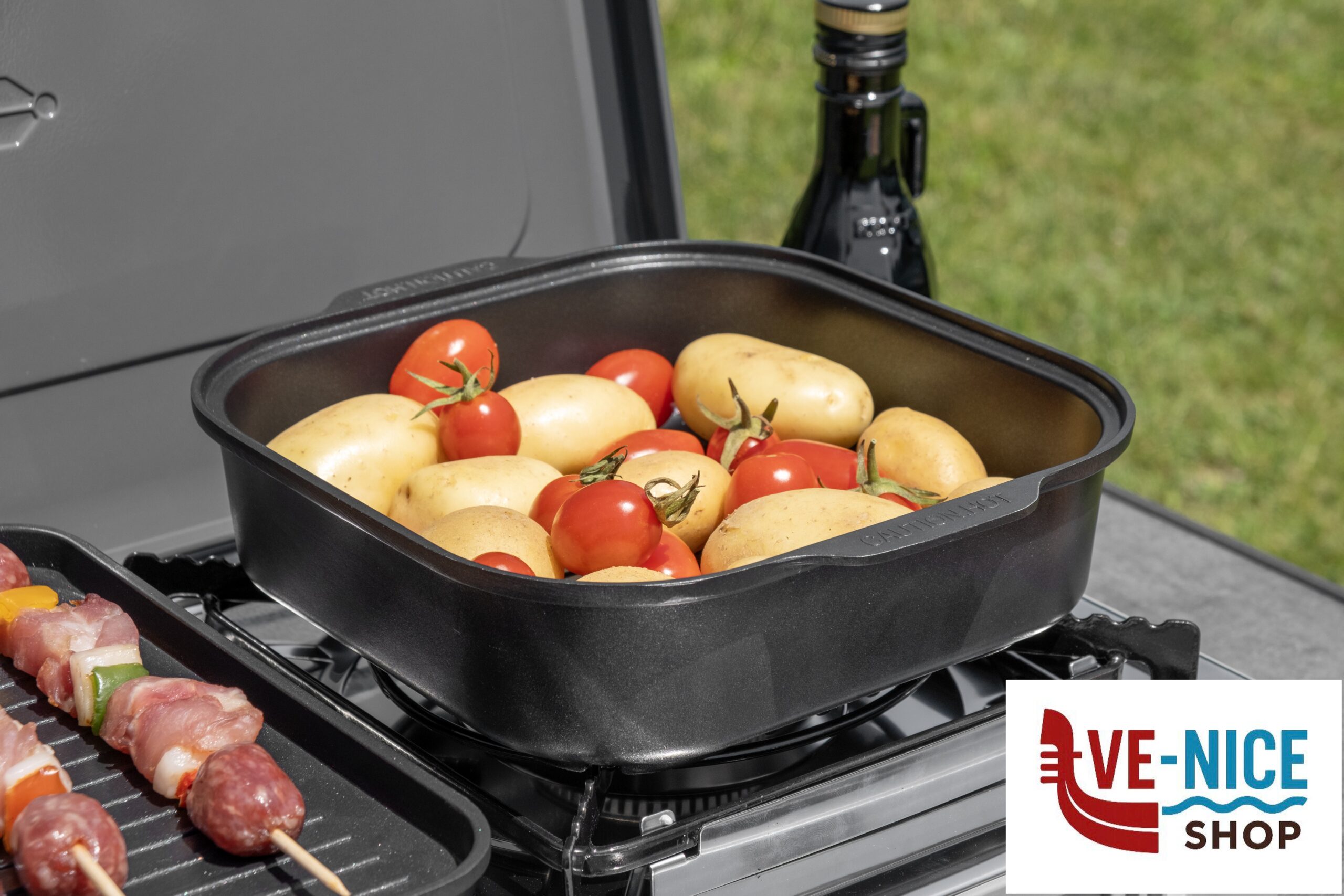 Square aluminium casserole with non-stick coating, integrated handles and practical glass lid. The specially designed bottom guarantees a secure hold on all Devil gas cartridge cookers. High-quality construction with contoured edges that prevent deformation caused by heat.