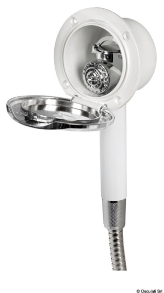 ConfrontaDoccette, pompe a mano Docce e box docce Box doccia Classic Evo a parete con doccia a pulsante Mizar Doccia in ottone cromato, vano di alloggiamento bianco in ASA UV resistente.