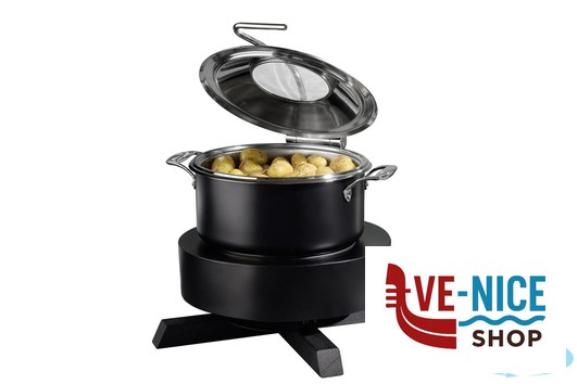 PIANO COTTURA A INDUZIONE CM 46,5 H 16 DIMENSIONE FUOCO 24 CM, 900 WATT, TELECOMANDO VIA CAVO INCLUSO, POTENZA REGOLABILE A SCATTI. SUPPORTO IN LEGNO DI FRASSINO E METALLO CON PIEDINI ANTISCIVOLO, COLORE NERO