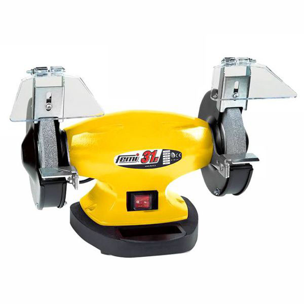 Potenza watt 400 – Mola mm 150 Velocita’ giri/min2800 Base maggiorata con vaschetta acqua asportabile Schermi protettivi plexiglas Completa di mole abrasive