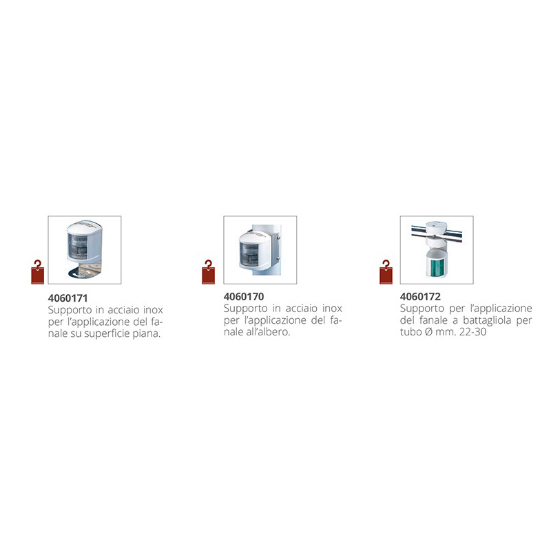 Navigation lights R.I.Na. approvalIn polycarbonate, UV rays resistant, protection grade IP56, complete with Rina certificate and 12 V. bulb.
