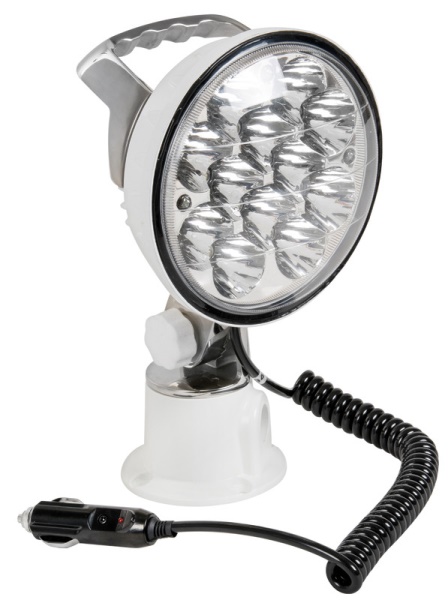 Fari, plafoniere Fari di profondità portatili e fissi Faro di profondità orientabile LED Moonlight Faro di profondità a LED orientabile con maniglia e snodo ruotabile in acciaio inox lucidate a specchio. Caratteristiche: – completamente orientabile con regolazione in altezza e rotazione a 360°; – basetta in PMA bianco per fissaggio su piano; – dotato di due manopole per la regolazione ed il bloccaggio dello snodo alla basetta; – interruttore ON-OFF a tenuta stagna; – cavo spiralato estendibile fino a 2 m, con spina per presa accendisigari