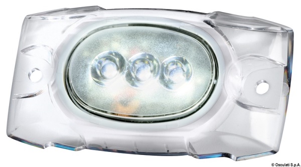 Fari, plafoniere Fari da murata e plancetta subacquei Luce subacquea LED per carena/specchio di poppa Installazione solo immersa in acqua . Fabbricata in tecnopolimero e dotata di LED ad alta efficienza. Necessita di un unico foro Ø 13 mm per passaggio cavo alimentazione.