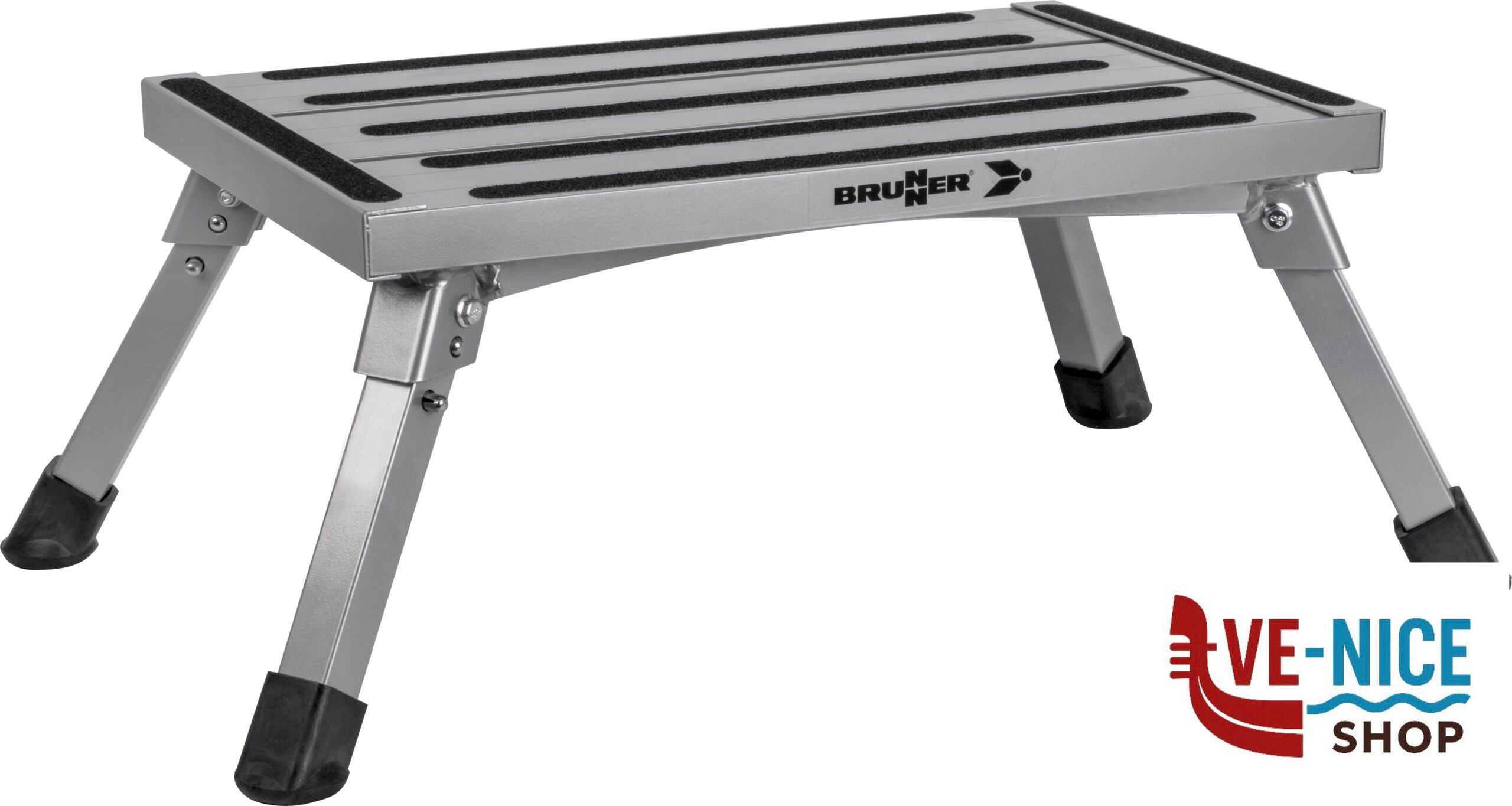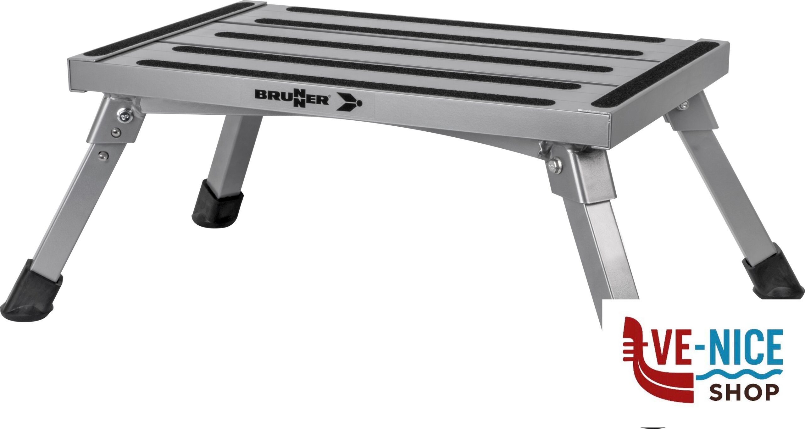 Very stable step with folding legs. Sturdy construction made of powder painted alu.