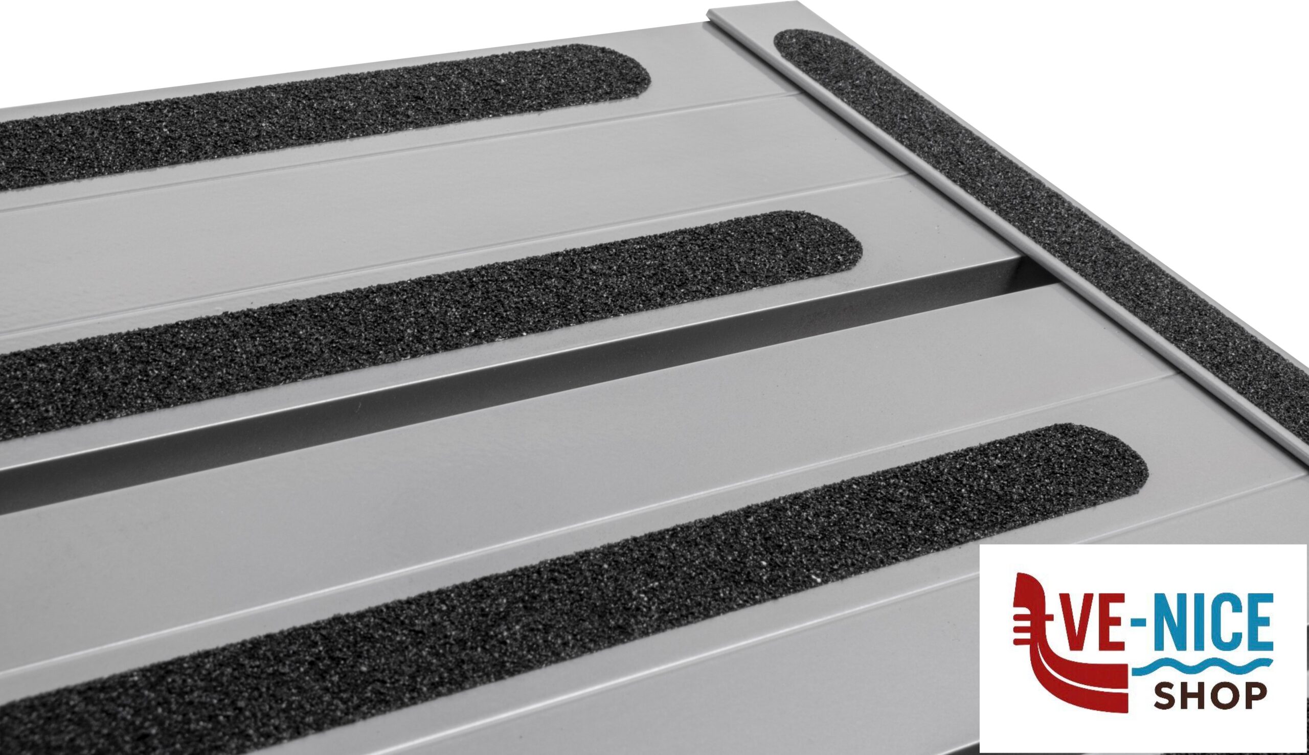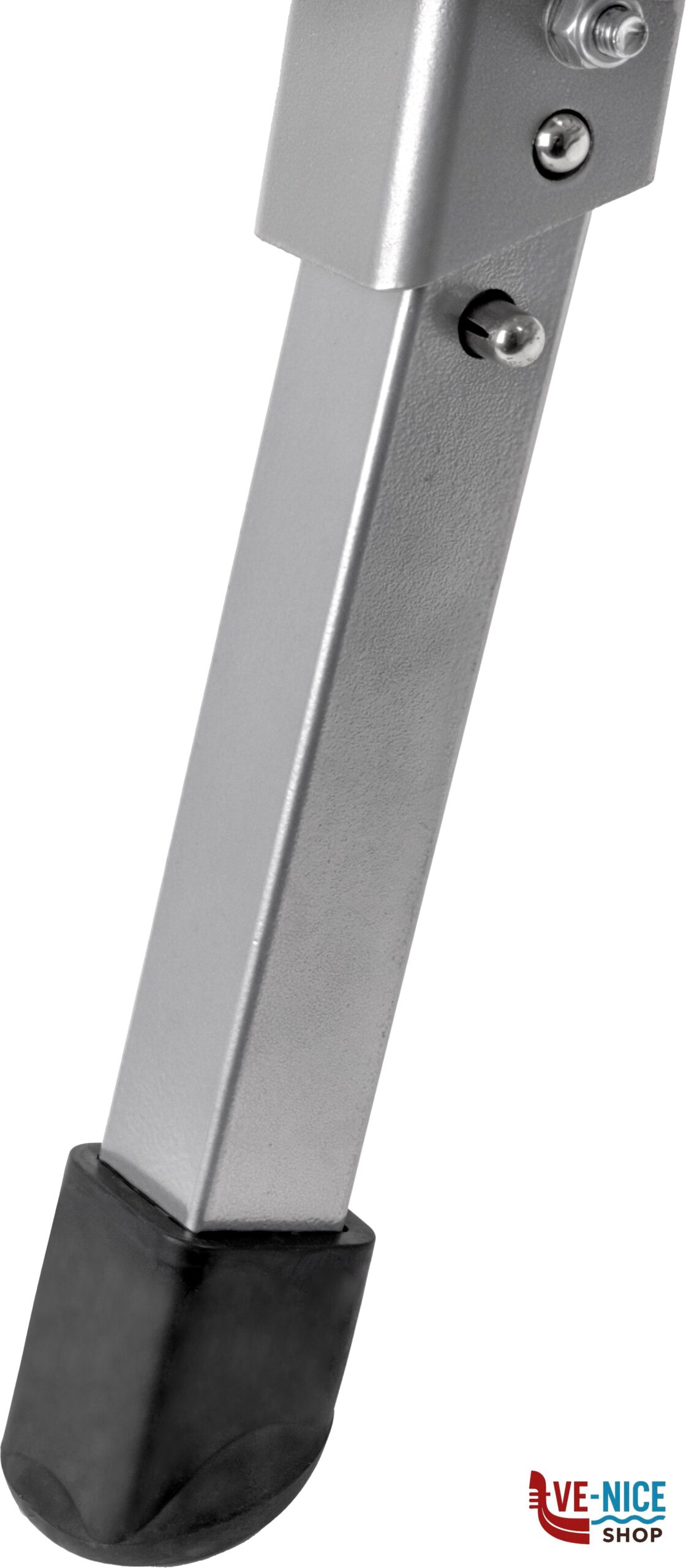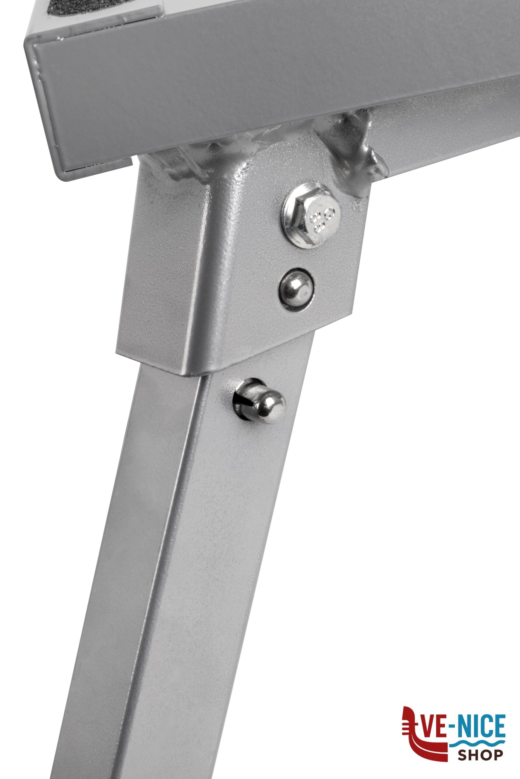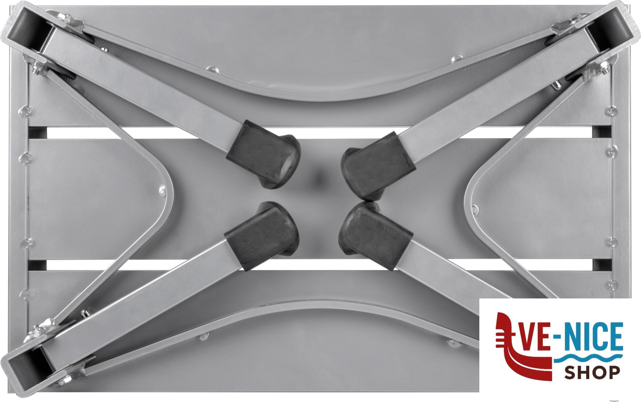 Gradino molto stabile con gambe pieghevoli. Robusta costruzione in alluminio verniciato a polveri.