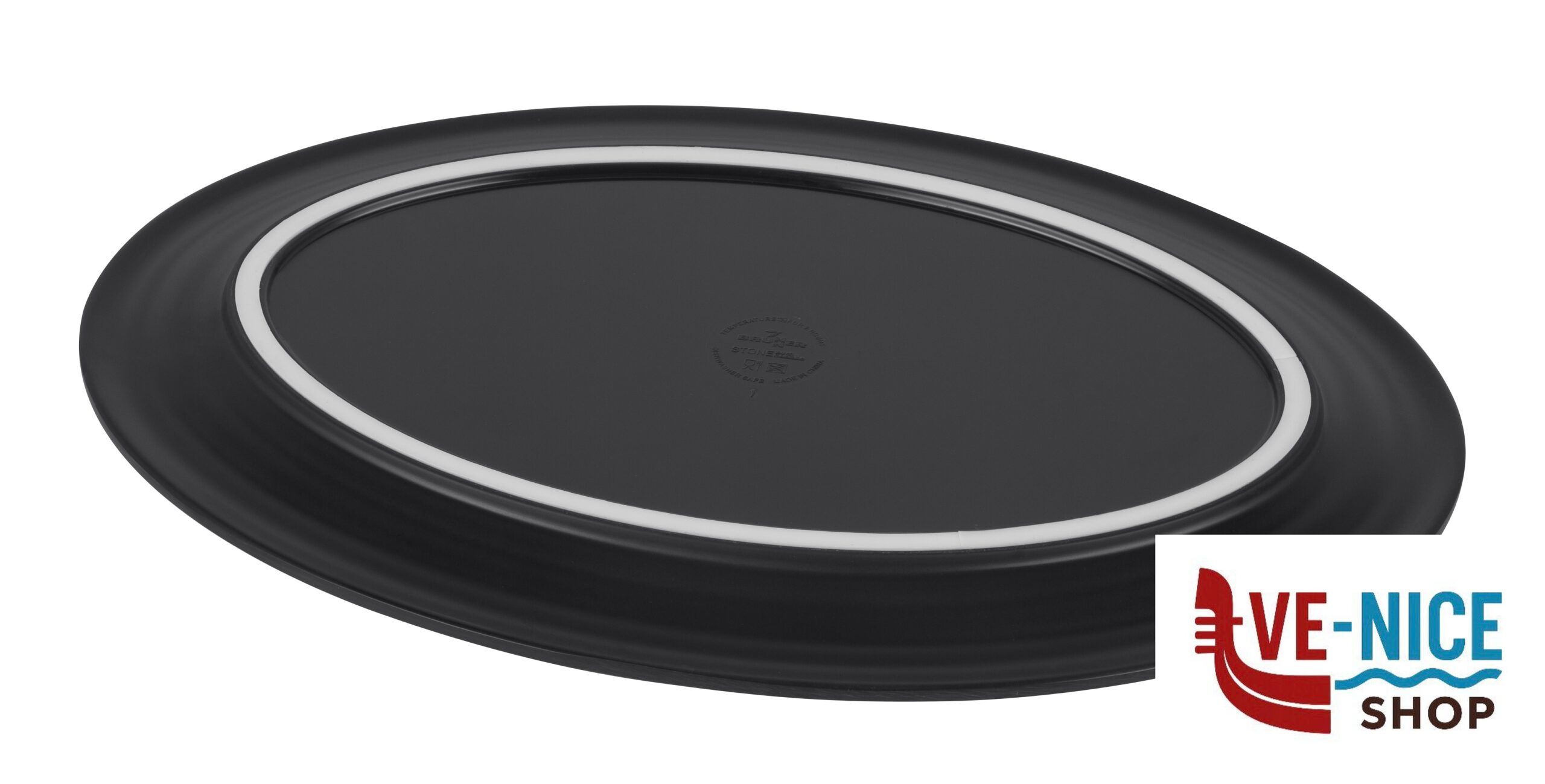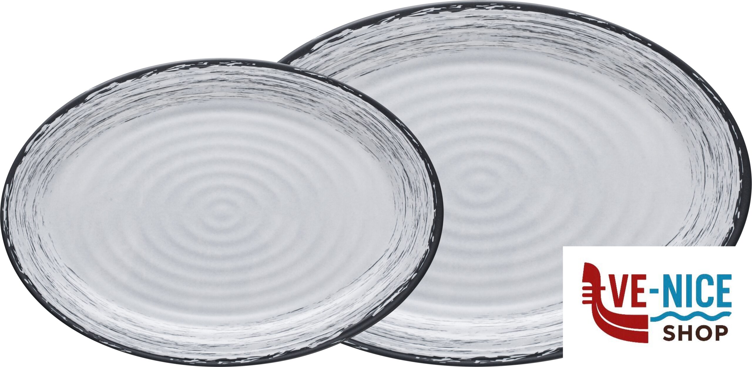 Oval serving and cold cuts plate set (2 pieces) made of Stonetouch melamine. With anti-slip ring. Stackable to save space. Packed in a beautiful gift box.