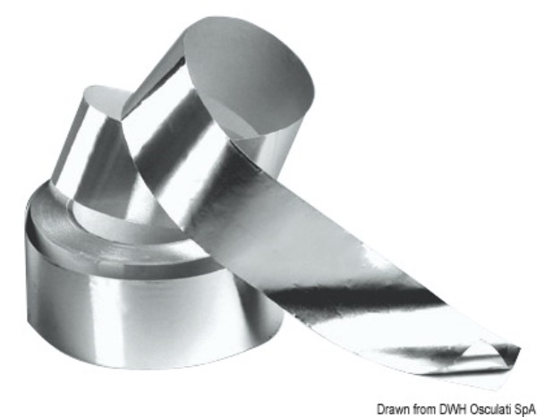 Isolanti, detergenti, vernici Fonoassorbenti, fonoisolanti e termoisolanti certificati R.I.Na. in accordo alla ISO 4589-3 Rotolo di nastro in alluminio adesivizzato Per rifinitura pannelli fonoisolanti 65.094.00, dopo che sono stati sagomati e montati.