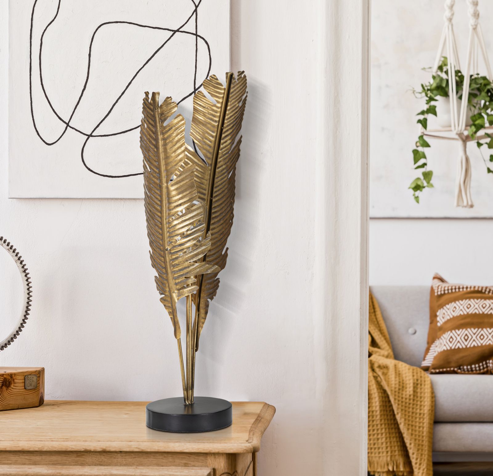 GLAMIRONGOLDLAMPADA DA TAVOLO IN METALLO DORATO CON BASE ROTONDA DAL DESIGN ISPIRATO ALLE FOGLIE DI PALMA.220V50HZ40 WATT MAXE271NO