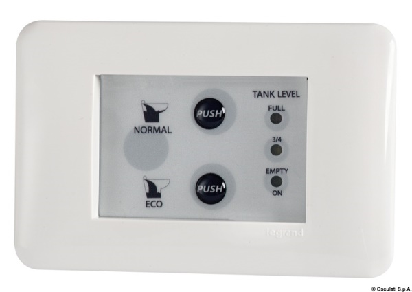 Lavelli, fornelli, frigoriferi, wc Pannelli controllo WC Pannello di comando WC Con pulsanti a sfioramento e indicatore a LED del livello acque nere nel relativo serbatoio. Versione per WC elettrici tradizionali.