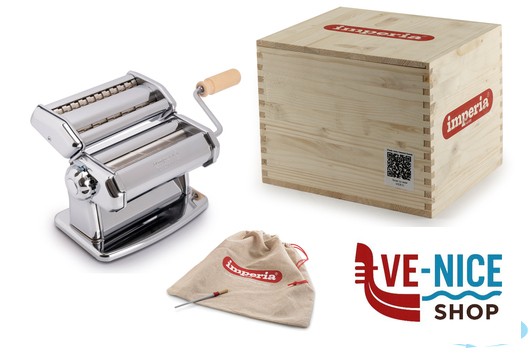 LA MACCHINA I PASTA GOURMET RUVIDA DI IMPERIA E’ METICOLOSAMENTE REALIZZATA IN ACCIAIO CROMATO, DISPONE DI RULLI UNICI CHE CREANO UNA PASTA DALLA TEXTURE RUVIDA E RUSTICA, PERFETTA PER ESALTARE I SUGHI CORPOSI. CON IMPERIA IPASTA E LメACCESSORIO モDUPLEXヤ INCLUSO, REALIZZERETE LA SFOGLIA IN SEI DIVERSI SPESSORI E DUE FORMATI DI PASTA: LASAGNETTE E FETTUCCINE. CON ELEGANTE SCATOLA IN LEGNO DI FAGGIO, SACCHETTO PROTETTIVO IN COTONE, PENNELLINO PER LA PULIZIA DEI RULLI E PRATICA TRAMOGGIA.