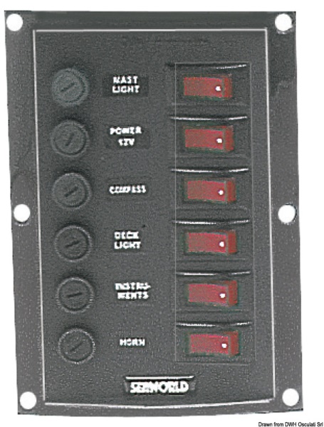 Materiale elettrico Pannelli e quadri elettrici Pannello elettrico in nylon Con interruttore a bascula luminosi. Ignifugo, stampato a iniezione di colore nero.