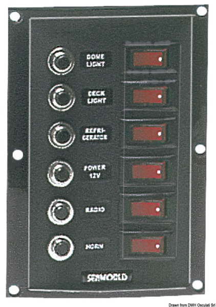 Materiale elettrico Pannelli e quadri elettrici Pannello elettrico in nylon Con interruttore a bascula luminosi. Ignifugo, stampato a iniezione di colore nero.