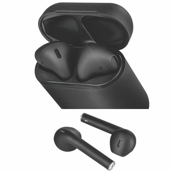 Auricolare smartphone bluetooth Microfono integrato Funzioni attivabili con input tattili Custodia di ricarica chiusura magnetica Cavo ricarica entrata USB-A uscita Type C Colore nero