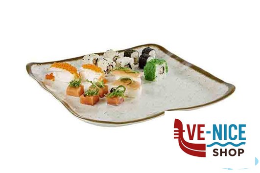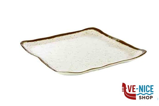 STONE ART-PIATTO QUADRO MELAMINA EFFETTO PUNTINATO CON BORDO MARRONE CM 33X32,5XH3 84517