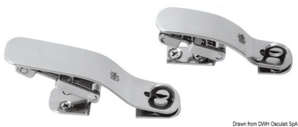 Molle a gas, ferramenta inox Chiusure a leva Chiusura per gavoni Slim Completa di occhiello porta-lucchetto. Corsa regolabile. Fabbricati in acciaio inox AISI 316 lucidato a specchio.