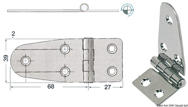 Molle a gas, ferramenta inox Cerniere spessore 2 mm Cerniera 2 mm In acciaio inox, lucidate a specchio, con smorzamento delle vibrazioni tramite asse centrale frenato.
