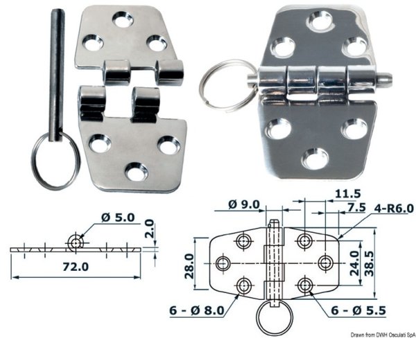 Molle a gas, ferramenta inox Cerniere spessore 2 mm Cerniera 2 mm In acciaio inox, lucidate a specchio, con smorzamento delle vibrazioni tramite asse centrale frenato.
