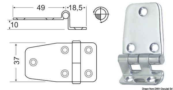 Cerniera inox a sbalzo 67,5×37 mm 38.441.57 Osculati