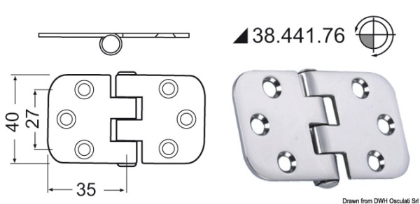 Molle a gas, ferramenta inox Cerniere spessore 2 mm Cerniera 2 mm In acciaio inox, lucidate a specchio, con smorzamento delle vibrazioni tramite asse centrale frenato.