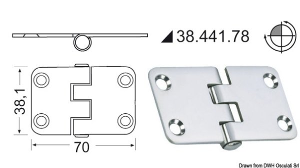 Molle a gas, ferramenta inox Cerniere spessore 2 mm Cerniera 2 mm In acciaio inox, lucidate a specchio, con smorzamento delle vibrazioni tramite asse centrale frenato.